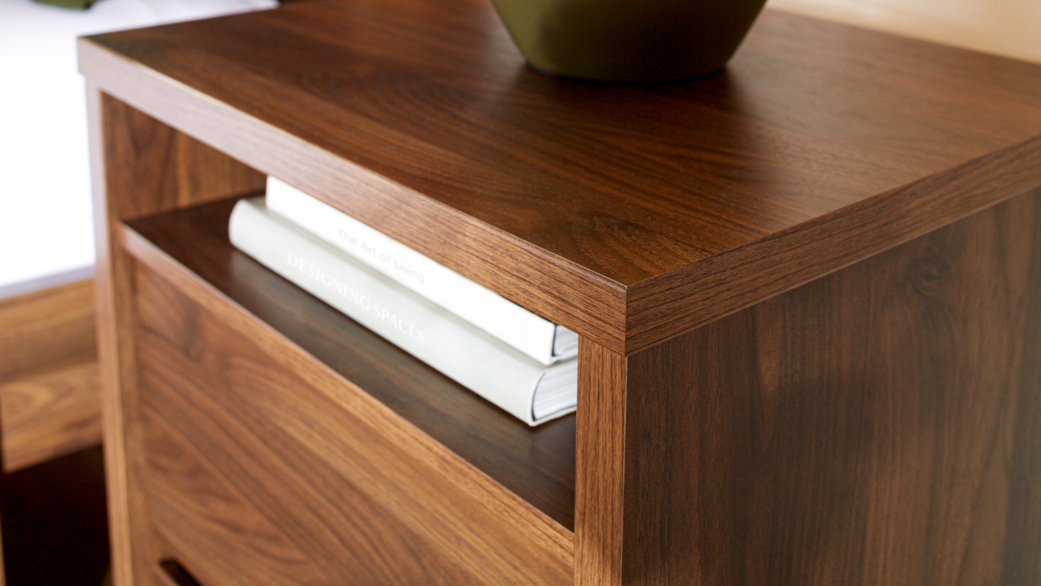 Design a sleek and contemporary bedroom range for the family to enjoy. Featuring a rich walnut woodgrain finish with contrasting black rails. Proudly New Zealand made. Exclusive to Harvey Norman.