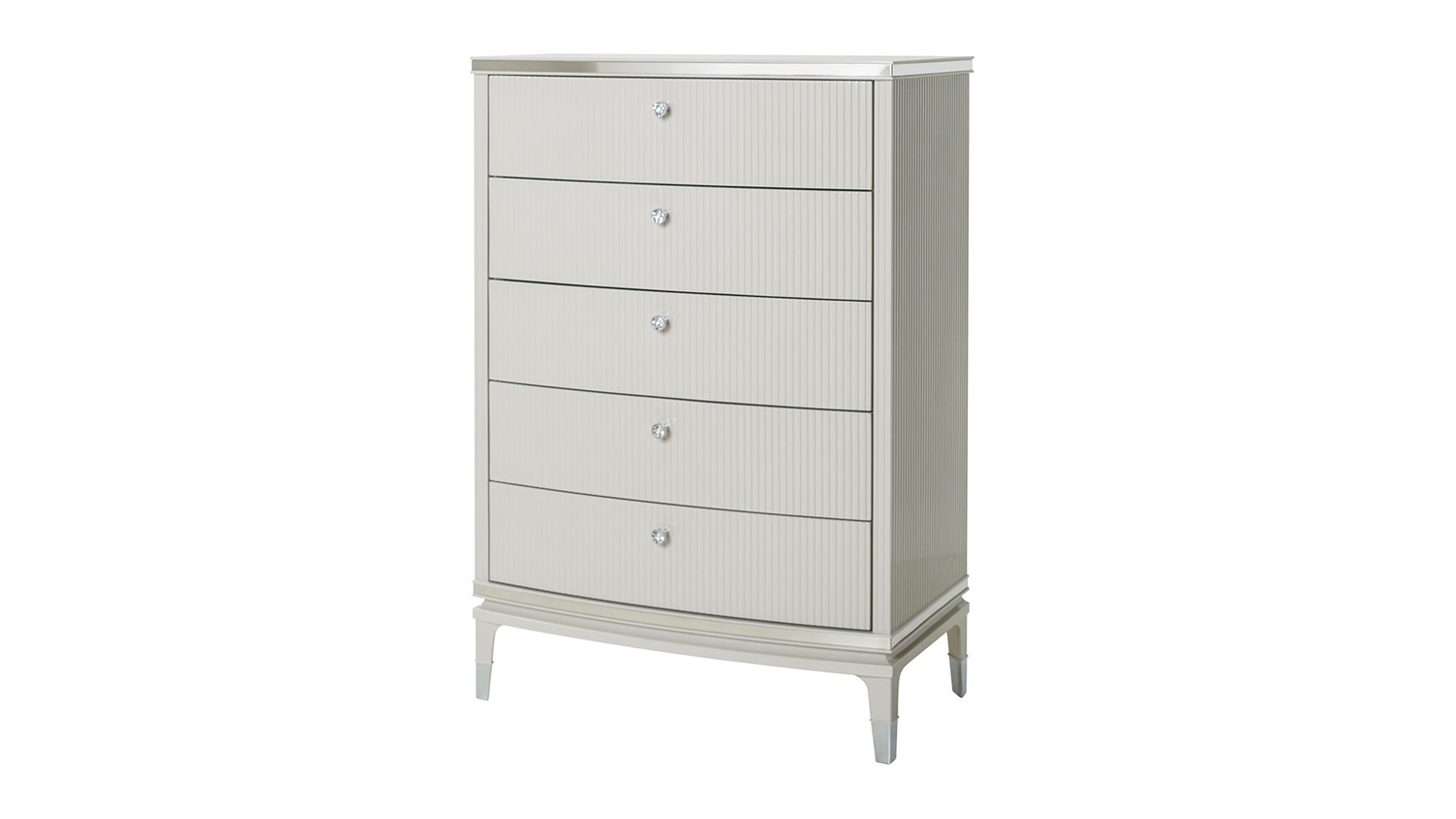 The Lucent 5 Drawer Tallboy offers a stunning high gloss finish with mirror edge detailing that will effortlessly enhance the style of your bedroom. This tallboy features 5 luxury, felt-lined drawers with soft-close drawer runners. Introduce sophistication and glamour into your bedroom today with the Lucent range.