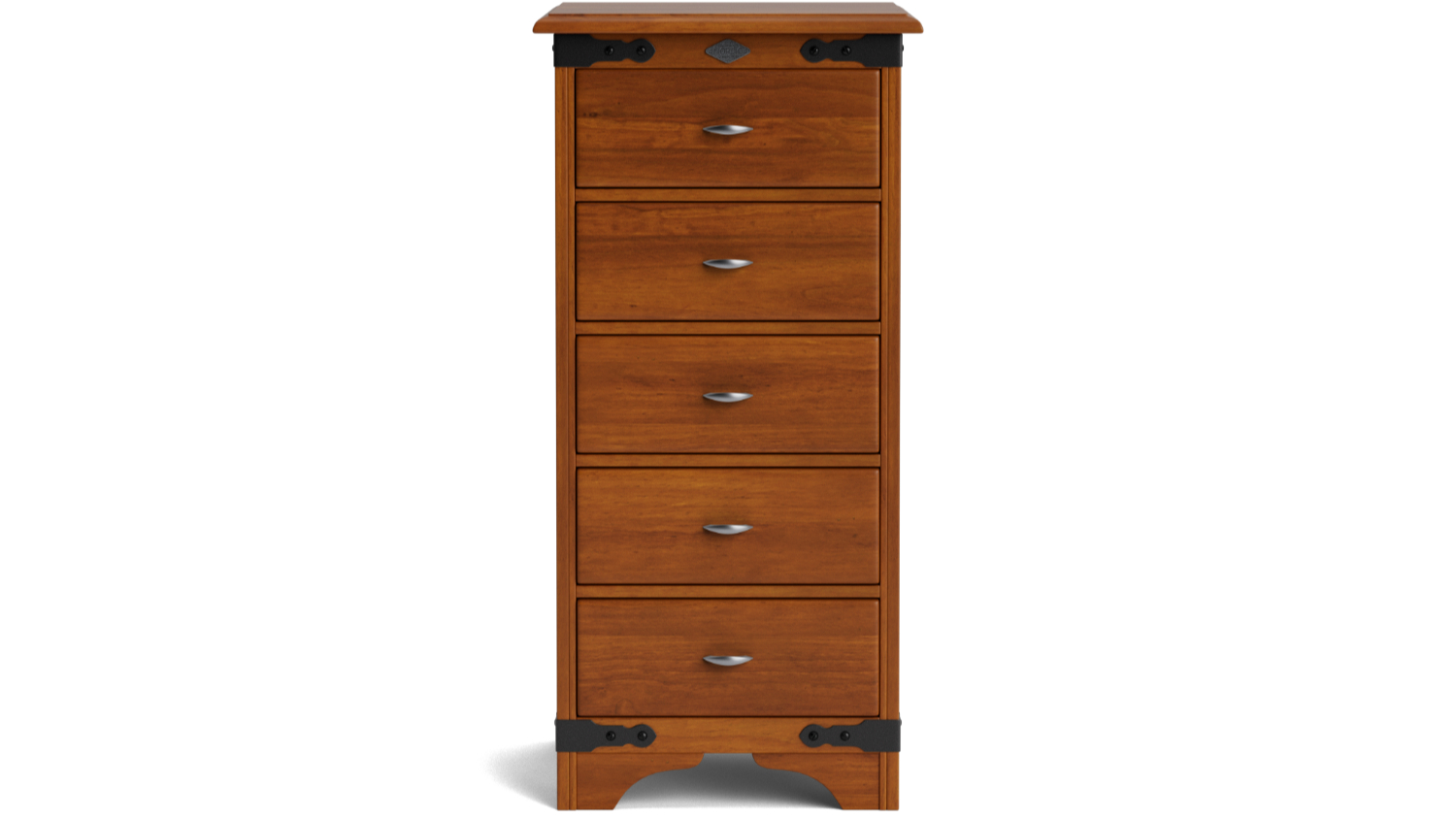 The Nordic 5 Drawer Tallboy comprises solid pine timber with a bevelled edge and forged iron trim, resulting in a timeless look that harmonises with traditional interiors. With five dovetailed drawers, you instantly gain versatile and attractive storage. From the initial design, right through to the unique, hand rubbed polishing process, these bedroom drawers have been crafted to bring enduring quality and style to your home.