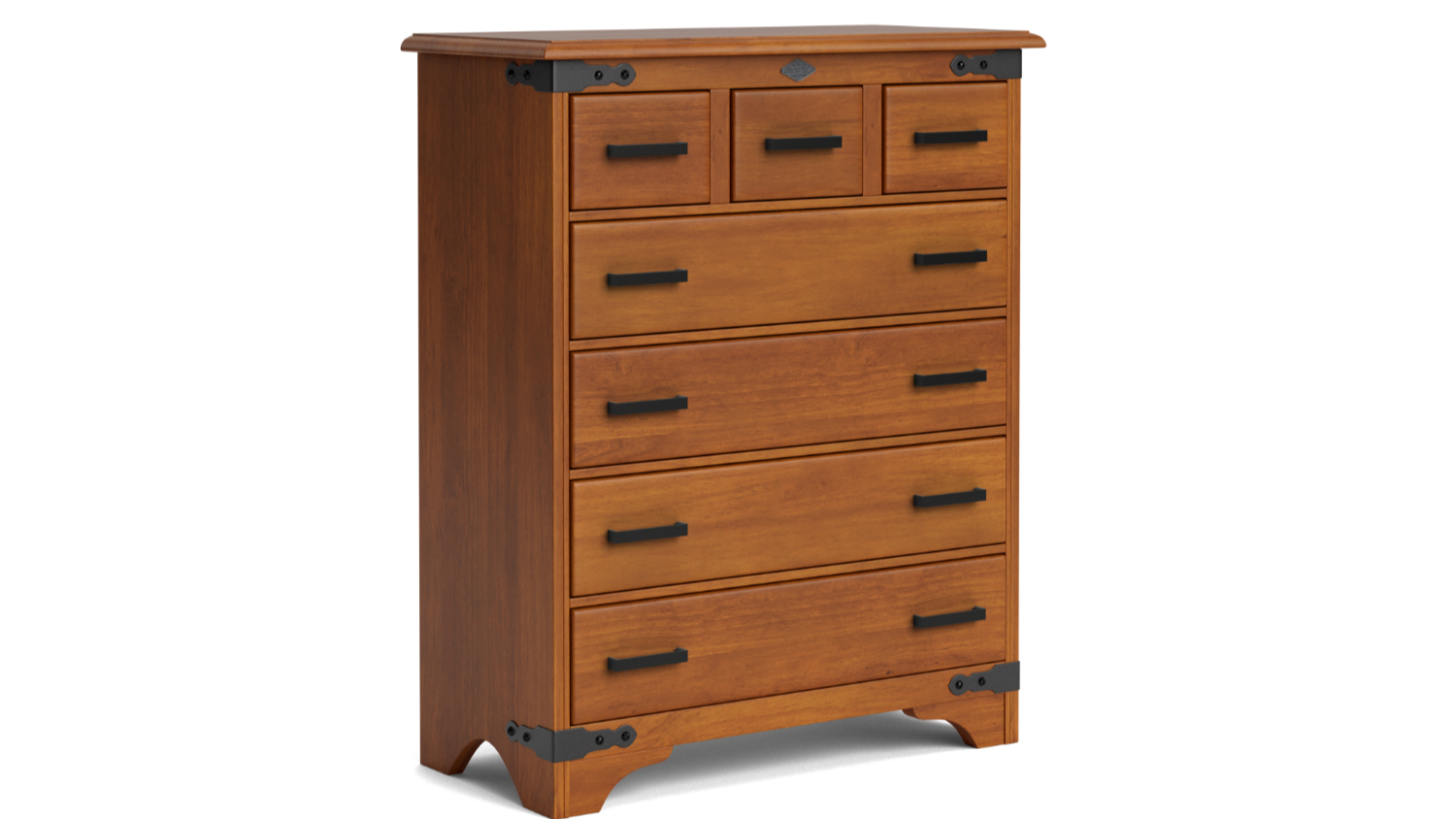 The Nordic 7 Drawer Scotch Chest comprises solid pine timber with a bevelled edge and forged iron trim, resulting in a timeless look that harmonises with traditional interiors. With seven dovetailed drawers, you instantly gain versatile and attractive storage. From the initial design, right through to the unique, hand rubbed polishing process, this chest has been crafted to bring enduring quality and style to your home.