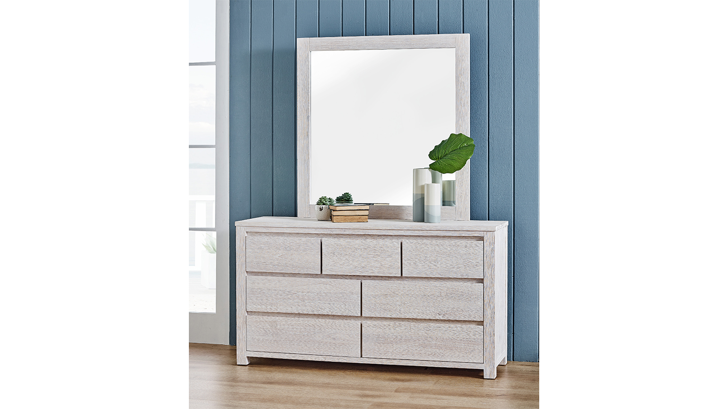 The Palm Beach 7 Drawer Lowboy is a beautiful and functional addition to any bedroom. Its sleek design complements the Palm Beach style perfectly. Stunning acacia timber flaunts subtle natural wood grain, accentuated by a brushed white stain for a relaxed coastal vibe. The top drawers are lined with felt, providing an extra touch of luxury for your belongings. The integrated handles and full extension metal runners on all drawers make opening and closing them effortless.
