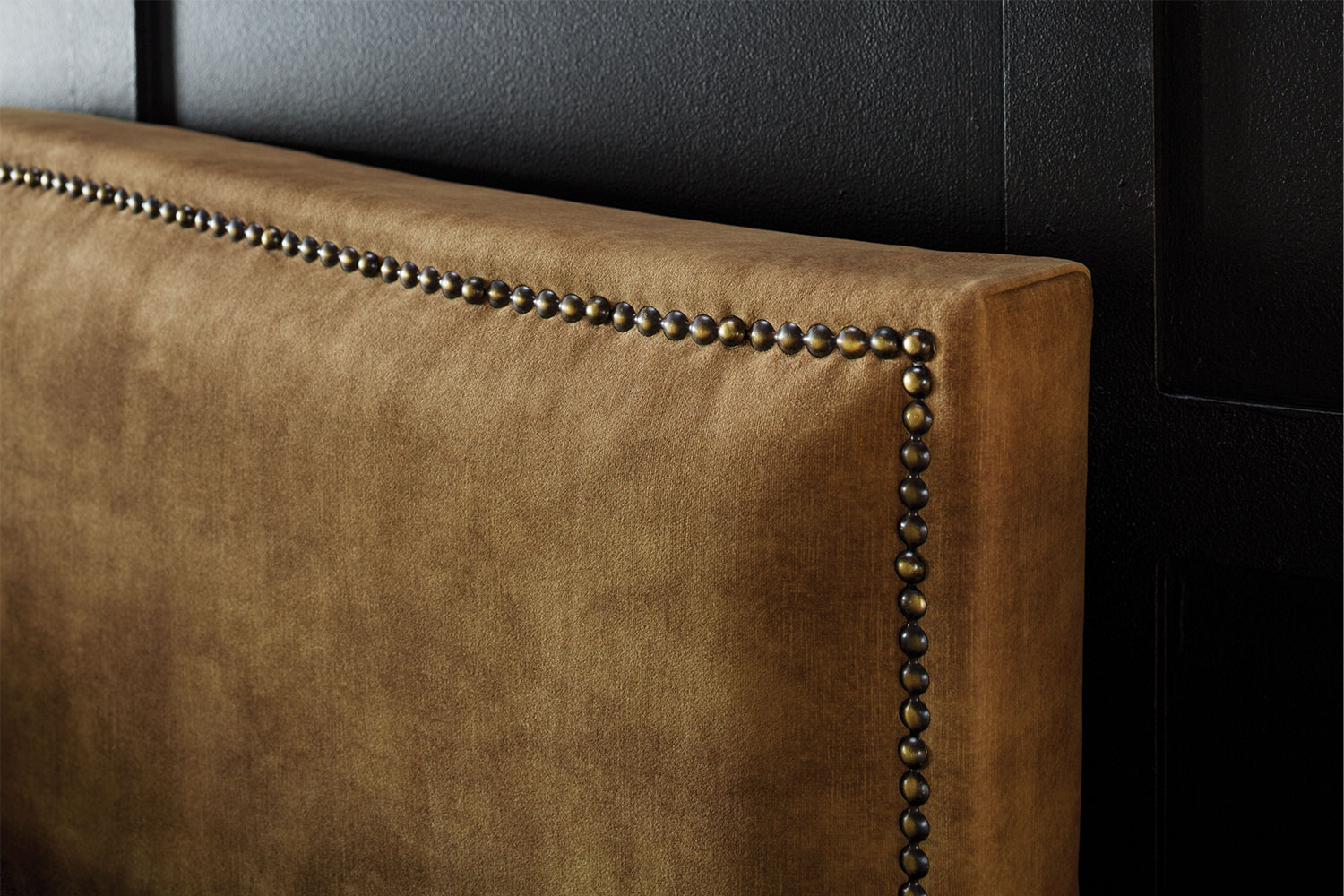 The Beauford Californian King Headboard is a stunning French-inspired upholstered headboard, with a gently curving top and stud accents. Customisable by choosing from a range of fabrics and stud colour options to suit your style.