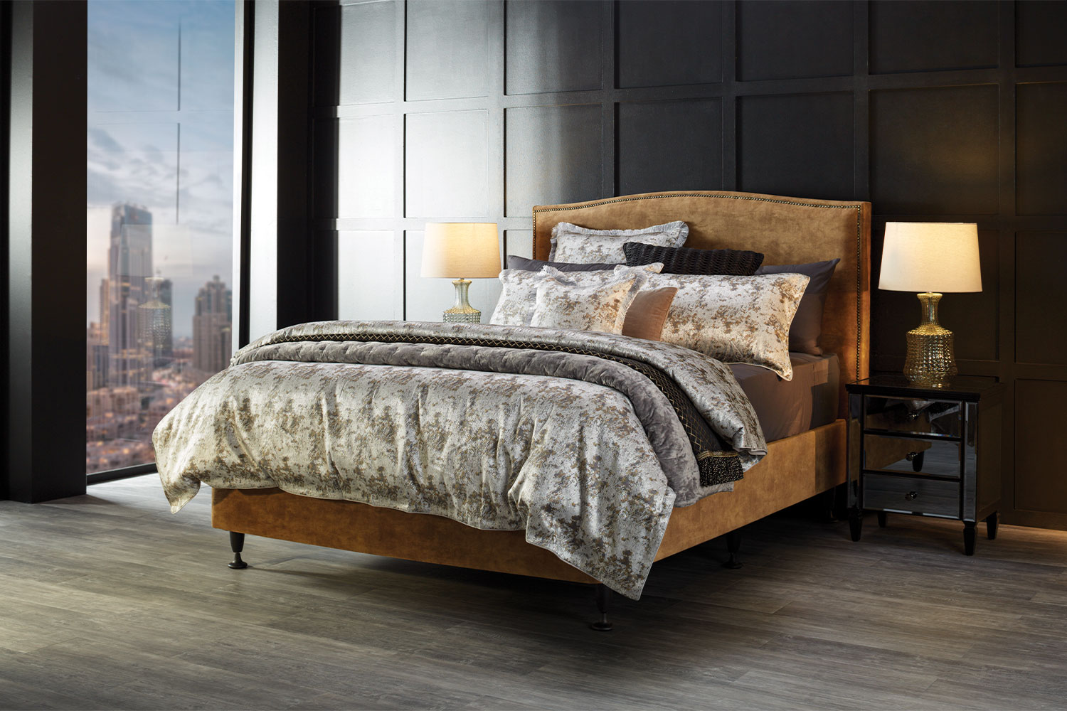 The Beauford King Headboard is a stunning French-inspired upholstered headboard, with a gently curving top and stud accents. Customisable by choosing from a range of fabrics and stud colour options to suit your style.