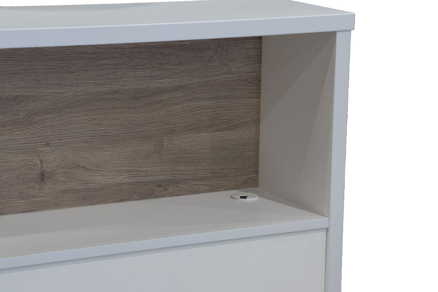 The Hero King Single Storage Headboard is clean, bright and built to last. It balances fresh white against a natural oak colour for a contemporary cool look, which suits kids rooms perfectly. The sleek finish is matched by smart design. The additional feature of a cable port in the back corner of the headboard shelf helps to hide cables when charging devices.