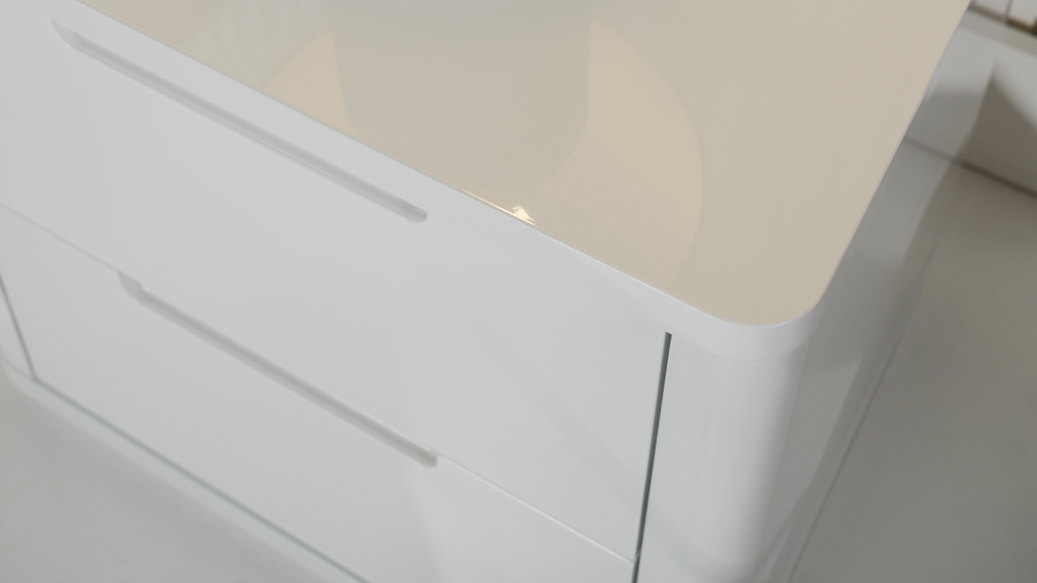 The clean and modern lines of the Adanya 2 Drawer Bedside Table makes it the perfect addition to any contemporary décor. With smooth curves in high gloss white, the two spacious drawers allow for convenient storage with ball-bearing metal runners for drawers that glide open and close smoothly.