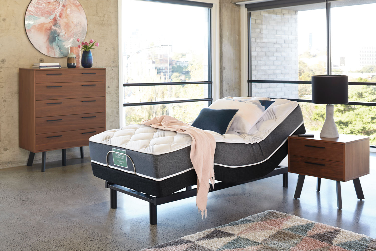 Great for growing bodies the SleepMaker Dream Support Medium King Single Mattress with Ease 3.0 Adjustable Base provides good support where it's needed most. This adjustable bed lets you easily raise the bed to read your book in comfort, and then return to a height that is best for you or a loved ones sleeping position helping you achieve a rejuvenating, restful sleep. This adjustable bed package features products from the well known and respected bed brands, SleepMaker and Tempur.