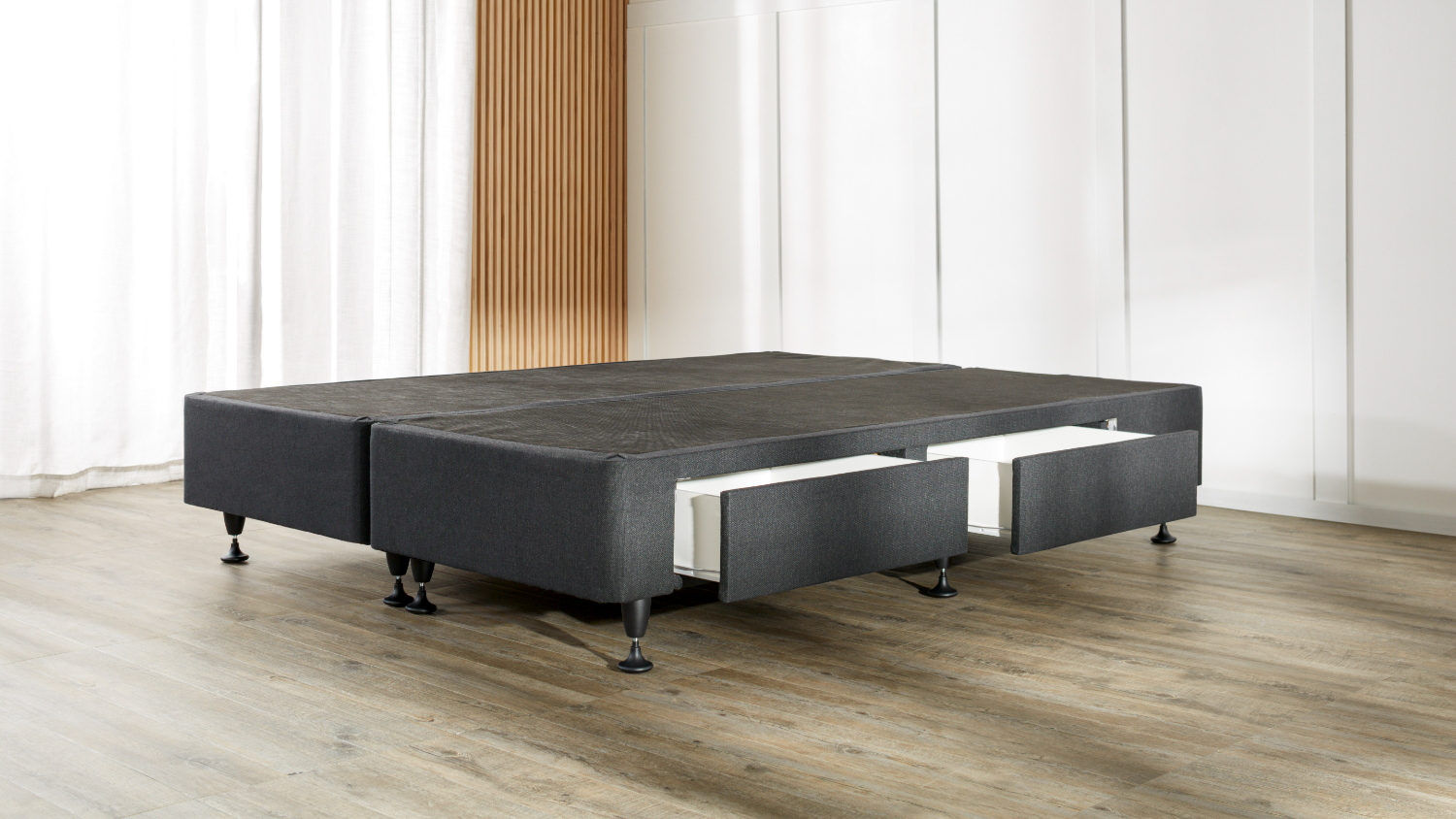 The Platform Side Drawer Split Bed Base by Sealy provides consistent support across the entire surface of the mattress. Offers 2 drawers for extra storage.