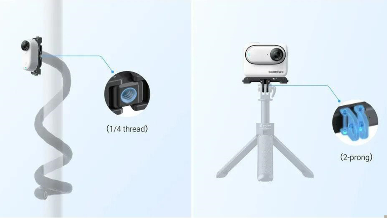 Elevate your filming experience with the Insta360 Quick Release Mount for GO 3S. With its quick 1/4" screw and two-prong mount, you can effortlessly attach your camera to various surfaces. The vibration-proof silicone pad ensures stable, sharp recordings. For added peace of mind, the innovative double-lock magnet and clasp system also guarantee a secure fit.