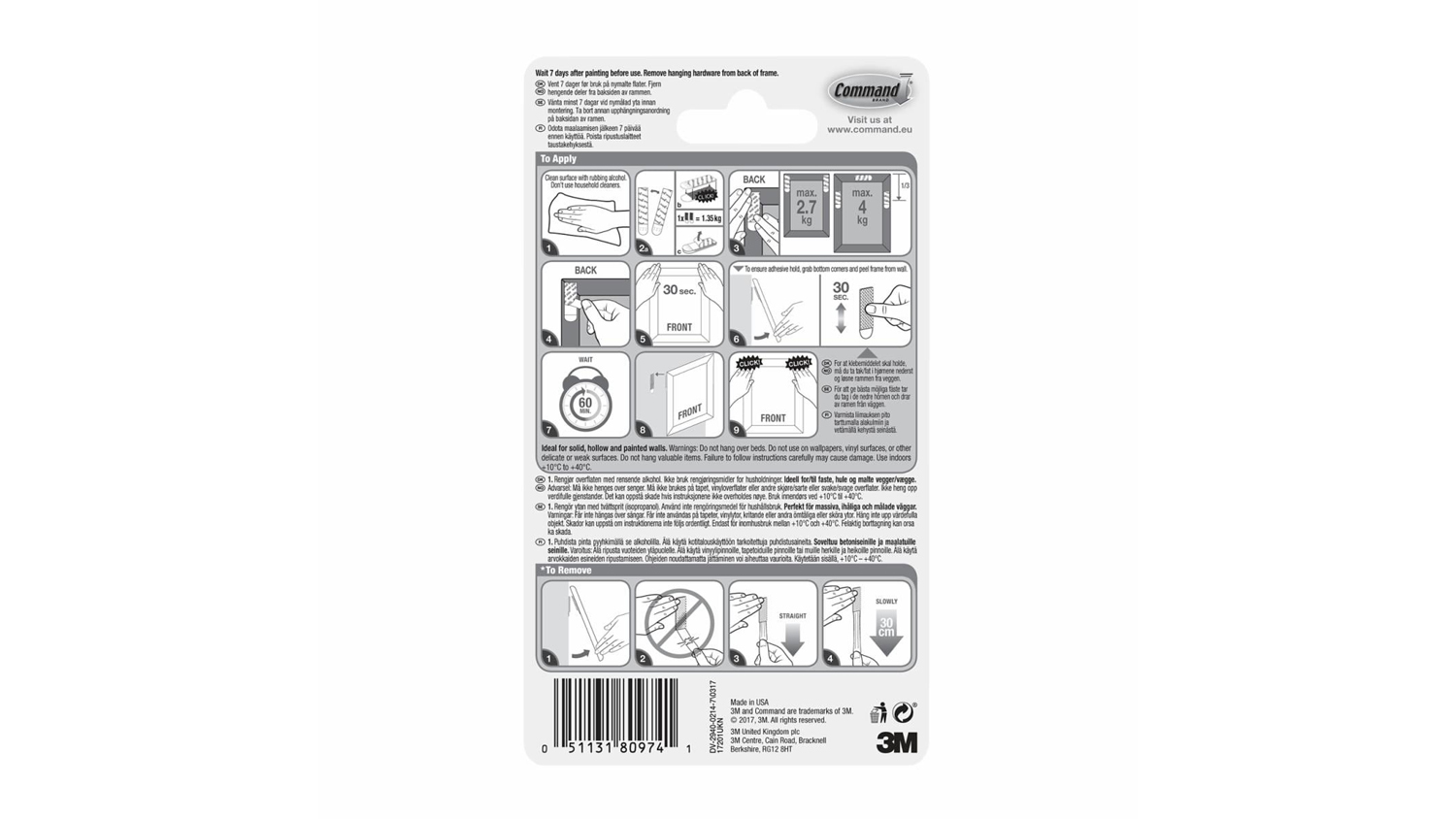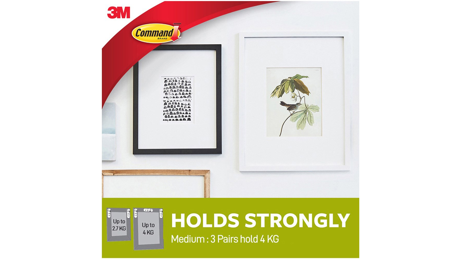 Hang decorations with ease using the 3M Command Medium Picture Hanging Strips 4 Sets. These renter-friendly strips lock securely into place and remove cleanly, so you can skip the need for nails and drilling tools. Each strip sticks to smooth surfaces like painted walls, wood, glass, and tile. Plus, the 4 sets can hold up to 5.4kg.