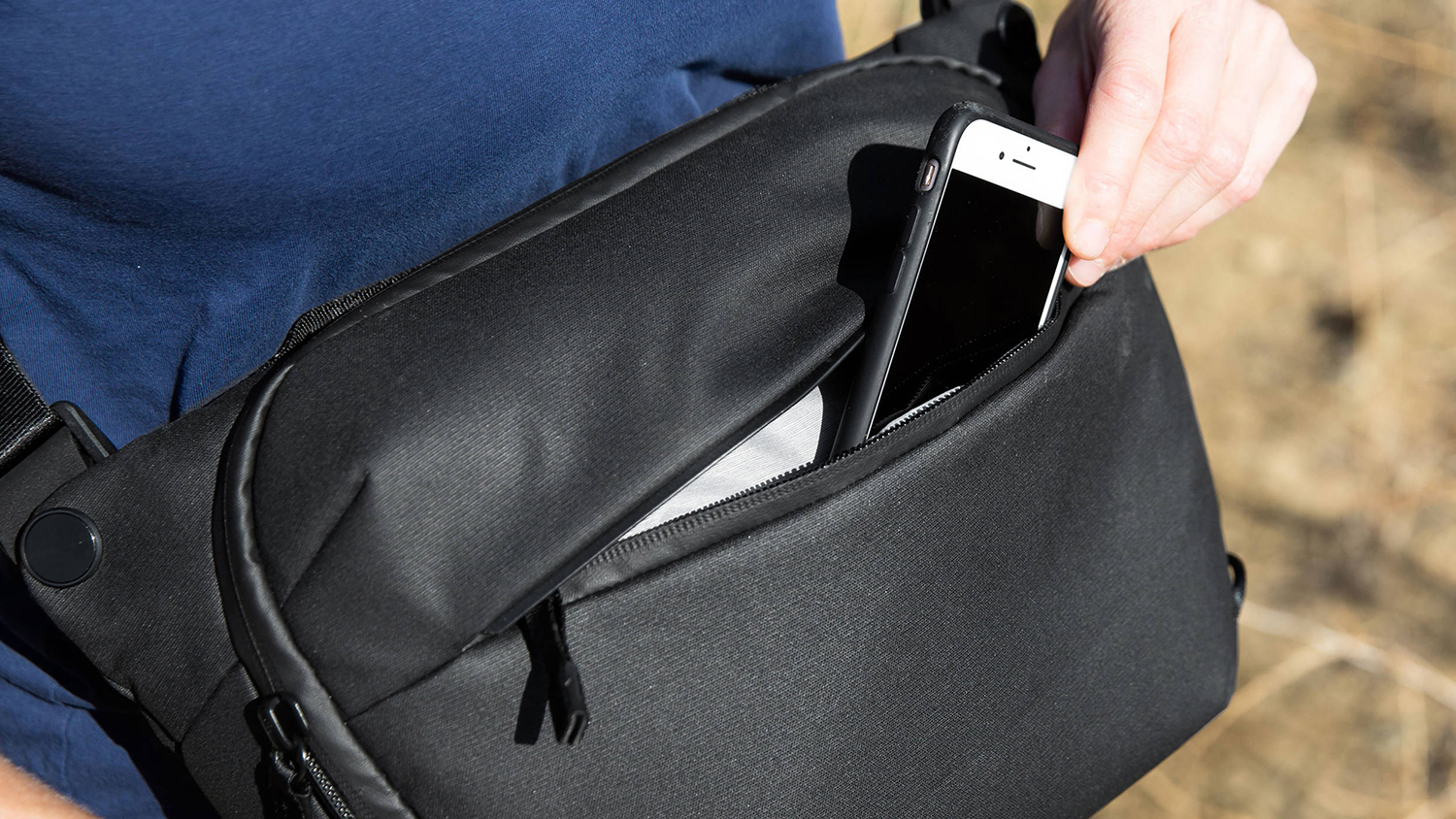 I do wish the zip pocket on the outside of the bag wasa bit more spacious. While it seems big, fitting items in and pulling them out is always a tight fit. Maybe adding some stretch to the pocket would fix it? Outer pocket aside though, the sling is perfect in my opinion.