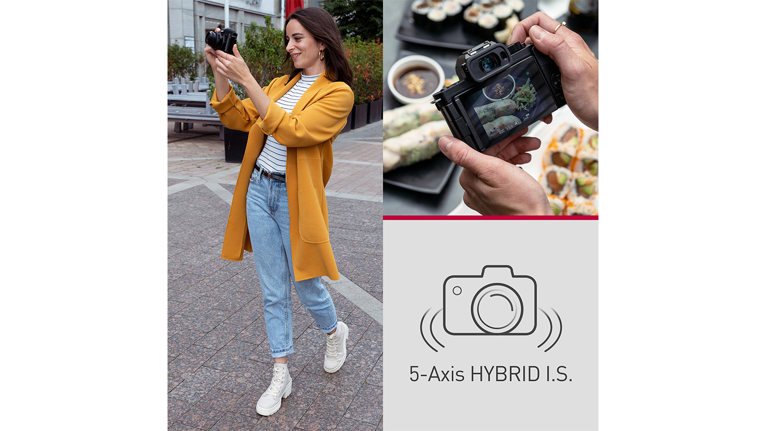| Image Stabilization | 5-axis HYBRID I.S. (For video recording only), 4-axis compensation works in 4K video recording |