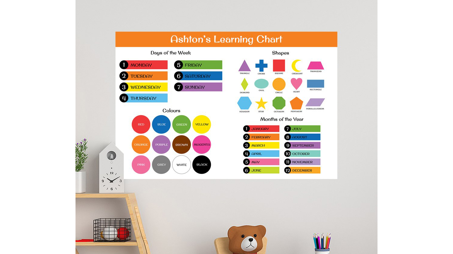 These educational wall decals are a fantastic way to help children learn! With a wide range of designs, stimulate your child's learning on a variety of topics, such as numbers, the alphabet, and so much more! Top off these charts by personalising it with your child's name or class group. Ideal for use in the home, at school or at daycare centres. Suitable for helping teach toddlers, kindergarteners and preschoolers the basics!