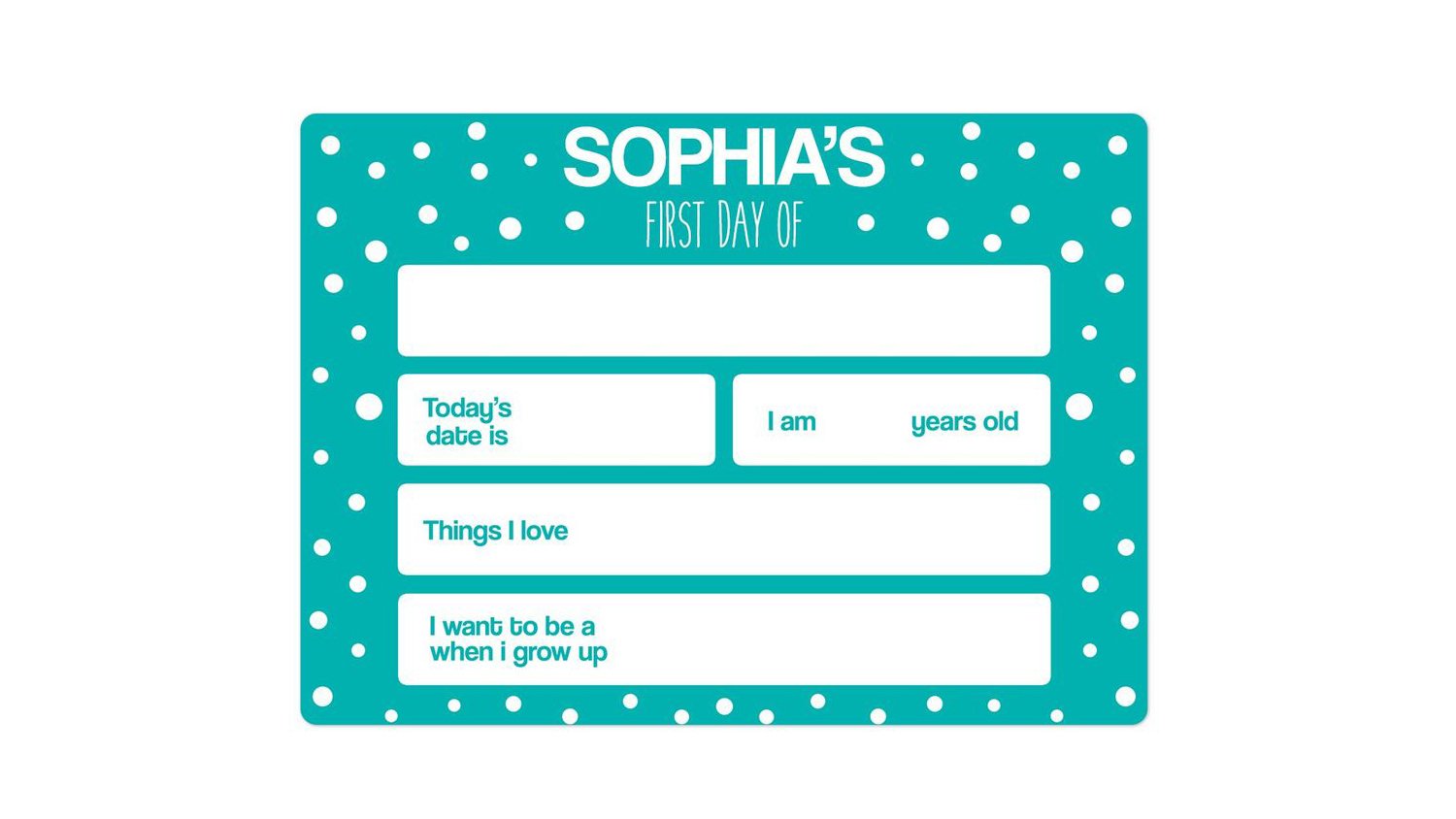 First Day Signs are the perfect way to celebrate and capture all of their First Day milestones as they grow. Write on it with a dry erase marker and simply wipe it clean and you're ready for next time! Celebrate their first day of daycare, preschool, school, etc.