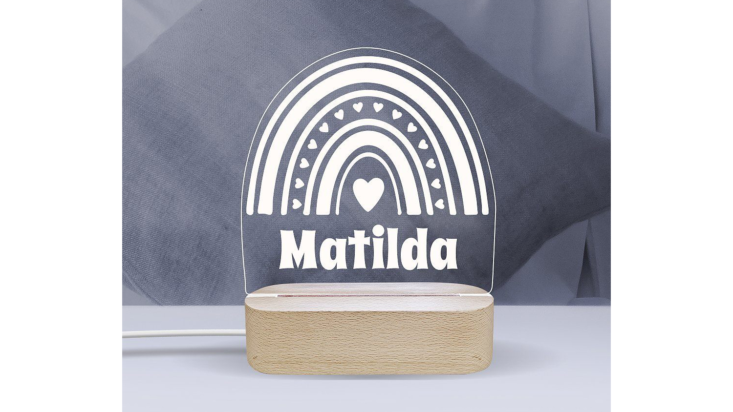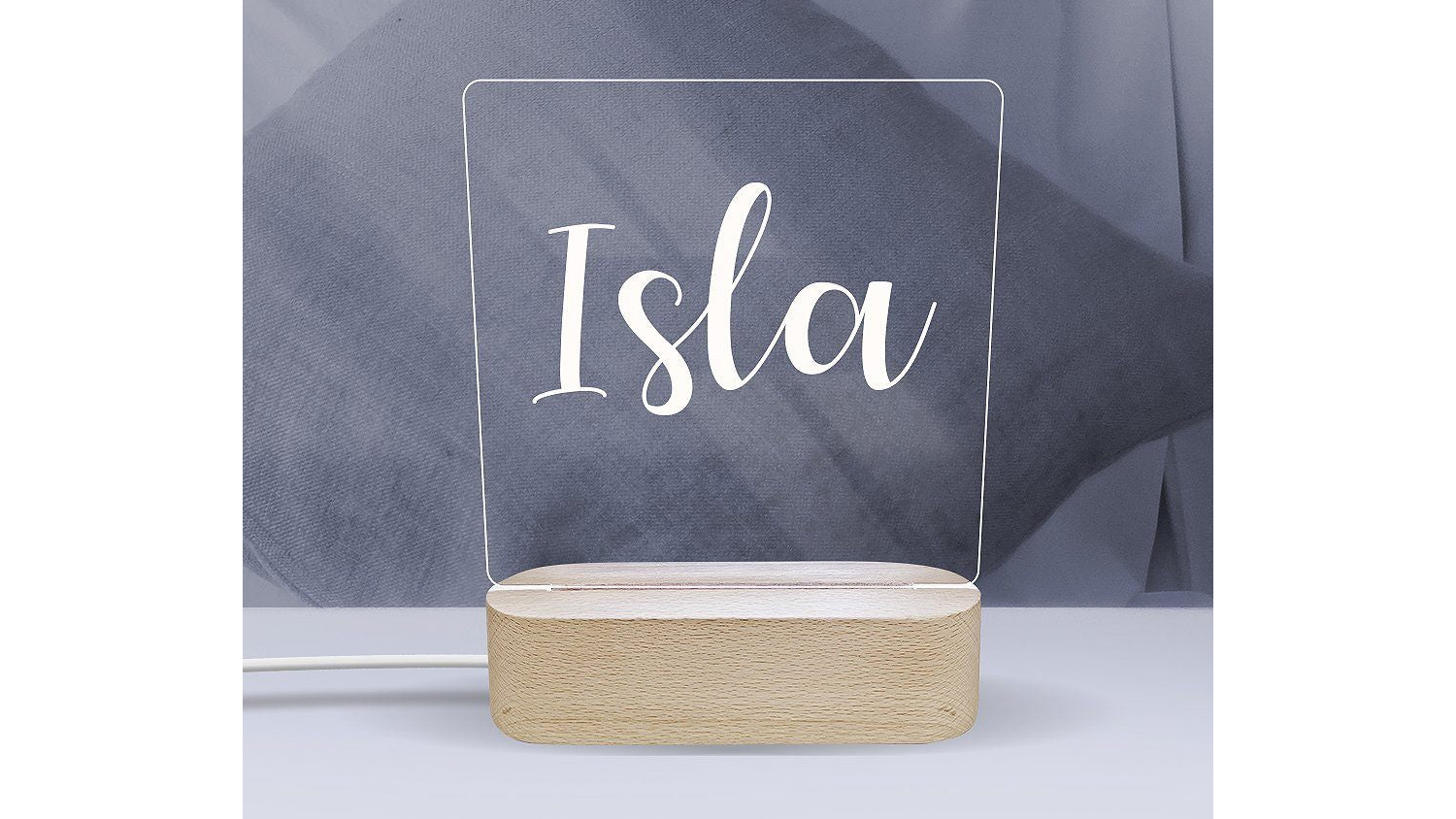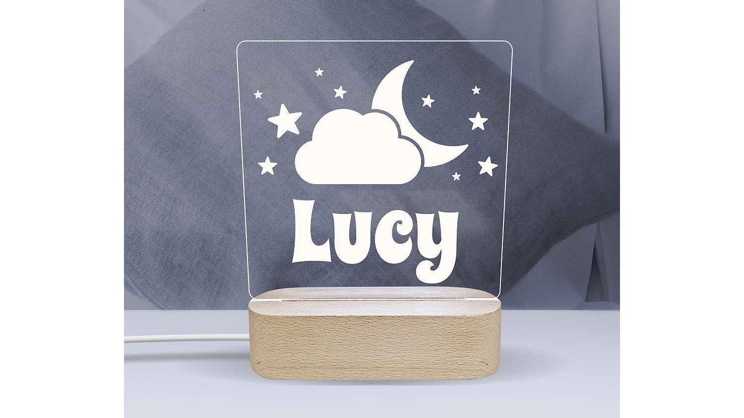 Transform your child's bedroom with the addition of our stunning customised night lights. This product includes a unique acrylic insert and features vibrant multi-colored LED lights, all set in a wooden base and powered by a USB wall cable. Not only do our lights provide a warm and comforting ambiance for your child's room, but they also remain cool to the touch due to the use of LED technology, ensuring safety for young children. Keep the lights out of reach for added peace of mind and to maintain the cleanliness of the acrylic insert.