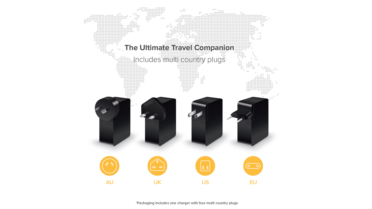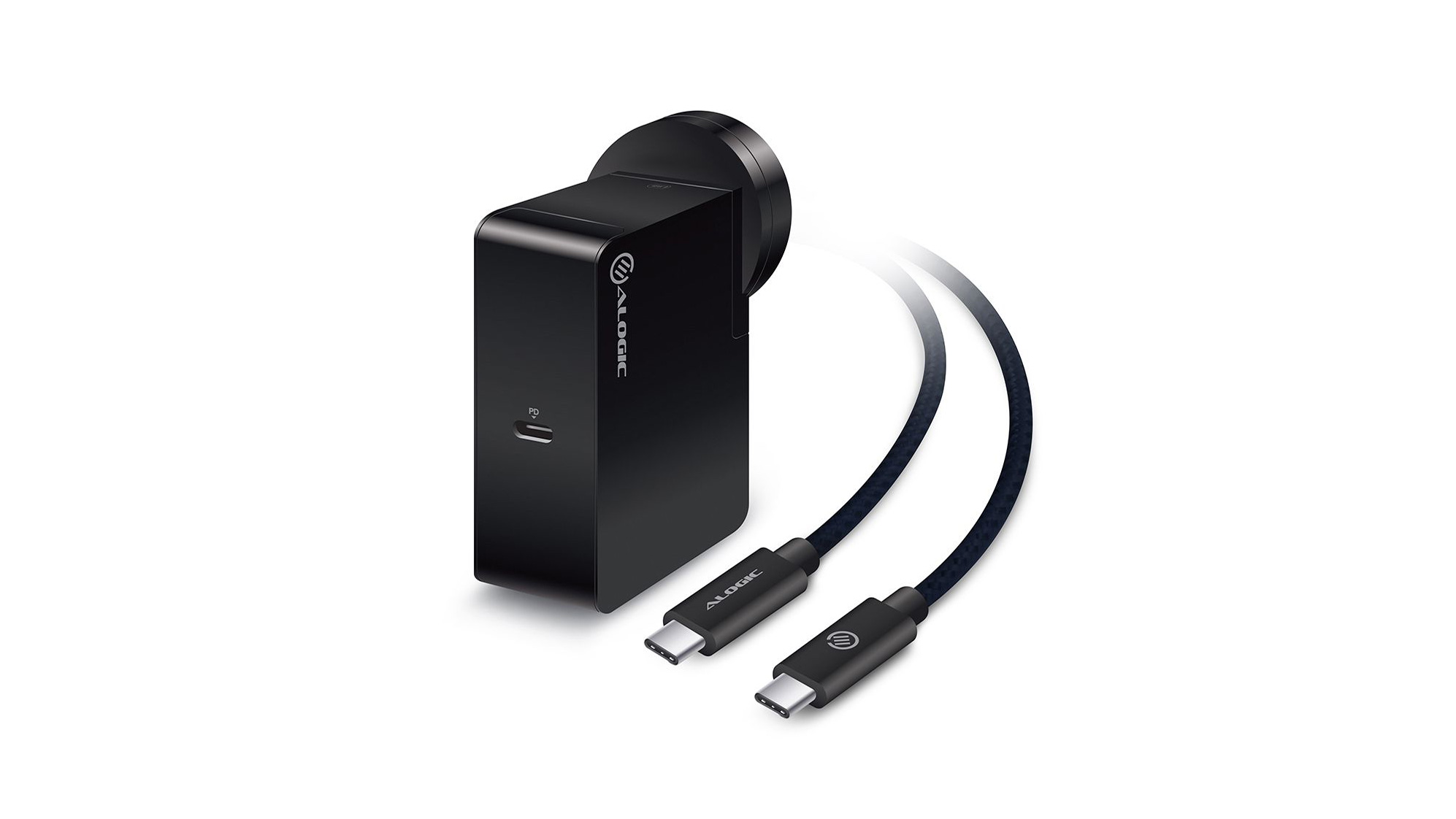 TheAlogic USB-C 60W Travel Charger with Multi Country Plugs and Power Delivery lets you charge USB-C enabled devices such as laptops, tablets, and mobile phones. The versatile charger is a perfect travel companion and comes included with power plugs for Australia, US, UK and Europe and a USB-C to USB-C cable.