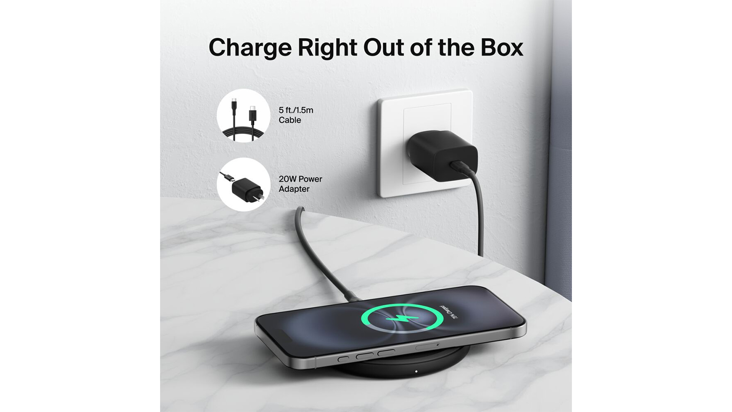 Compact and convenient, the Belkin BoostCharge 15W Wireless Charging Pad lets you efficiently power up your devices without cluttering your desk. It comes with a power supply unit and a 1.5m USB-C cable, so you can readily refuel your device whenever you need. Plus, it underwent rigorous testing to ensure it can handle your day-to-day charging needs.