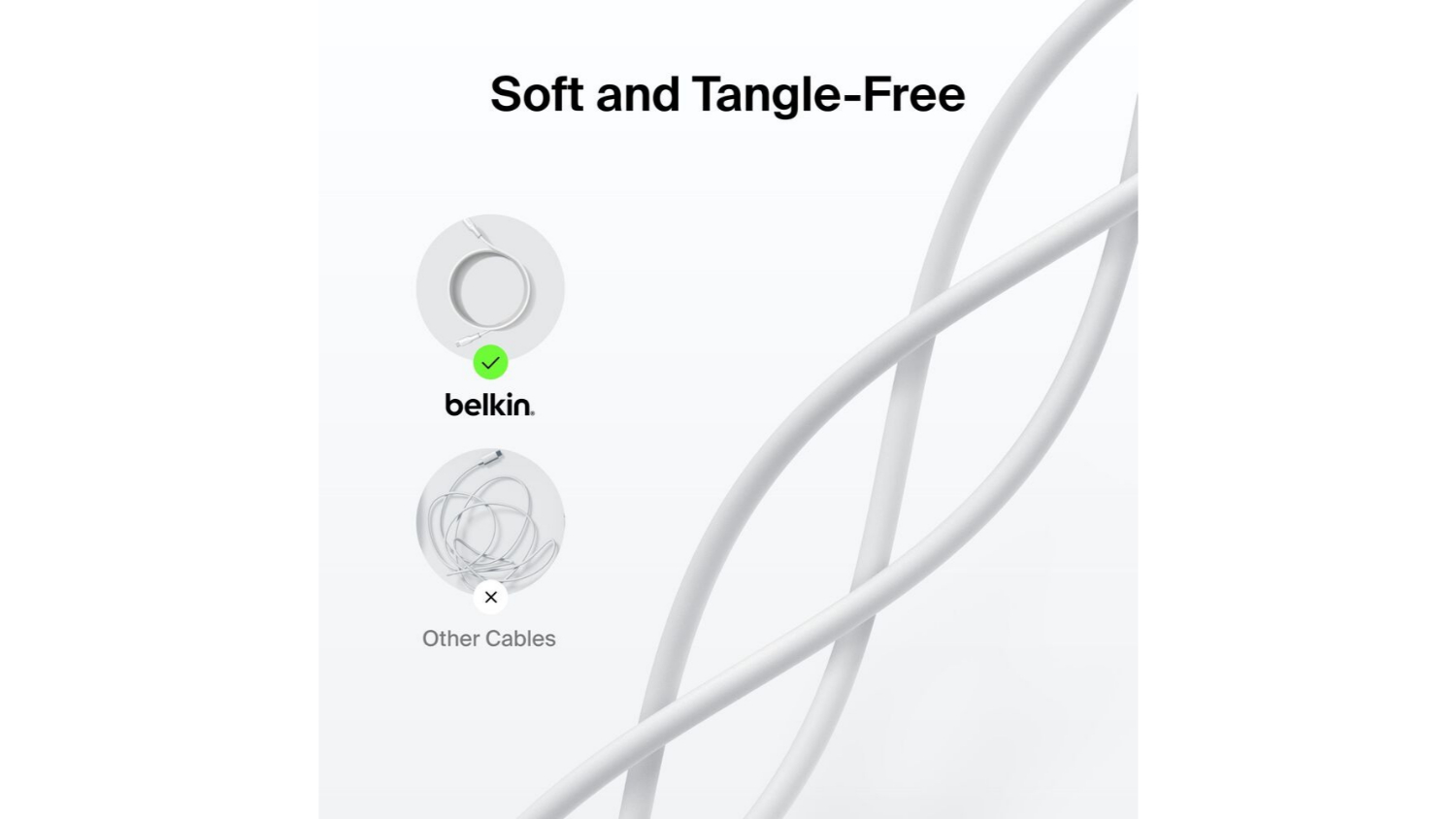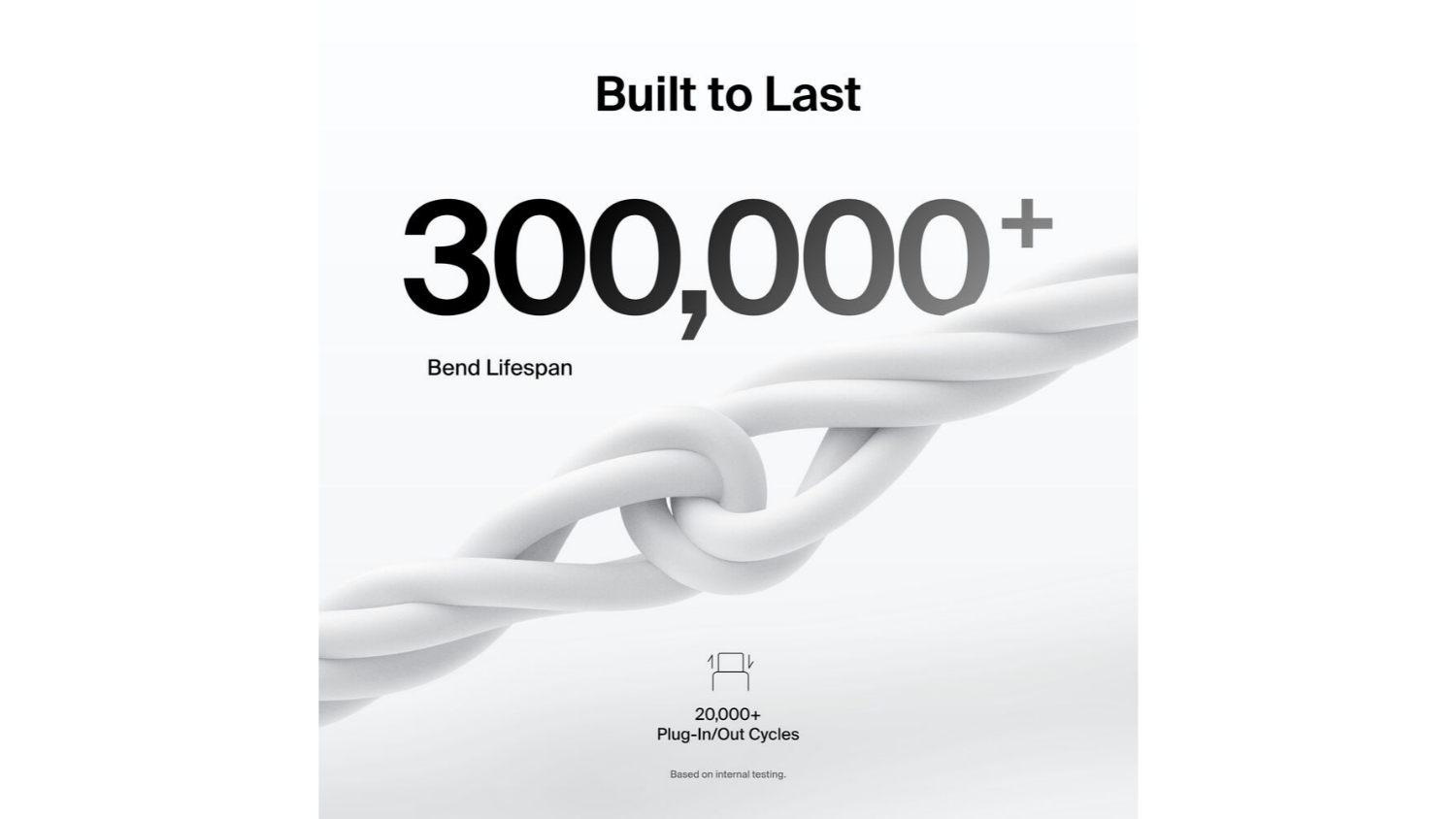 **Based on internal bend test at 60°. Based on internal testing. This cable survives 300,000+ bends and 20,000+ plugs, compared with 1,000 bends for an ordinary PVC cable. Actual results may vary.