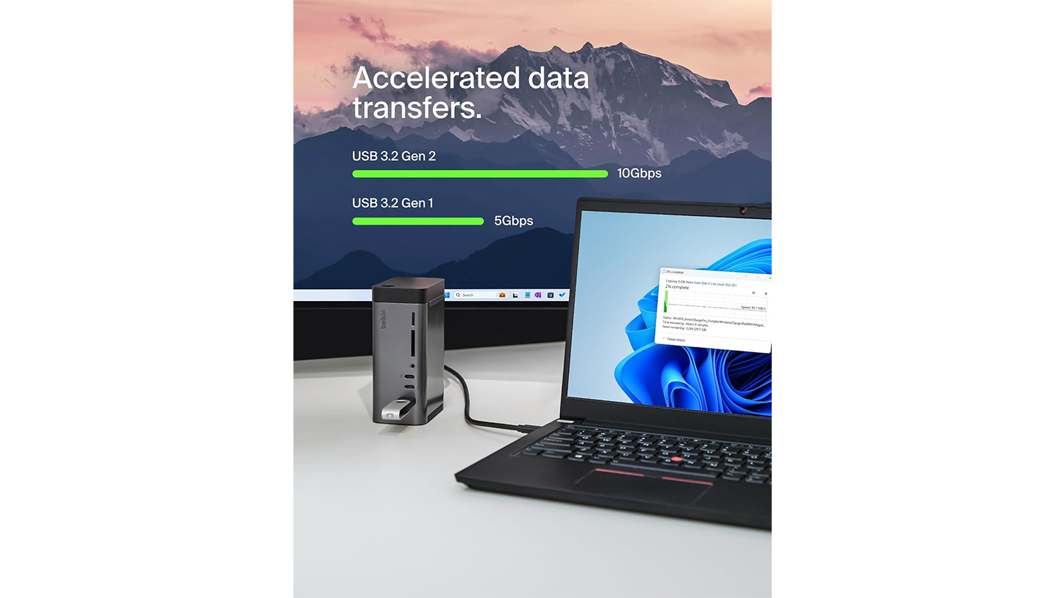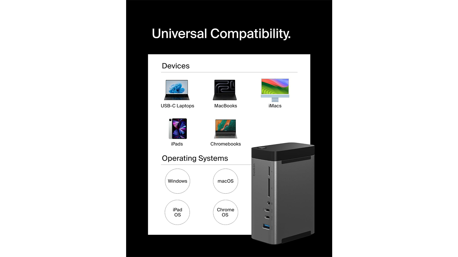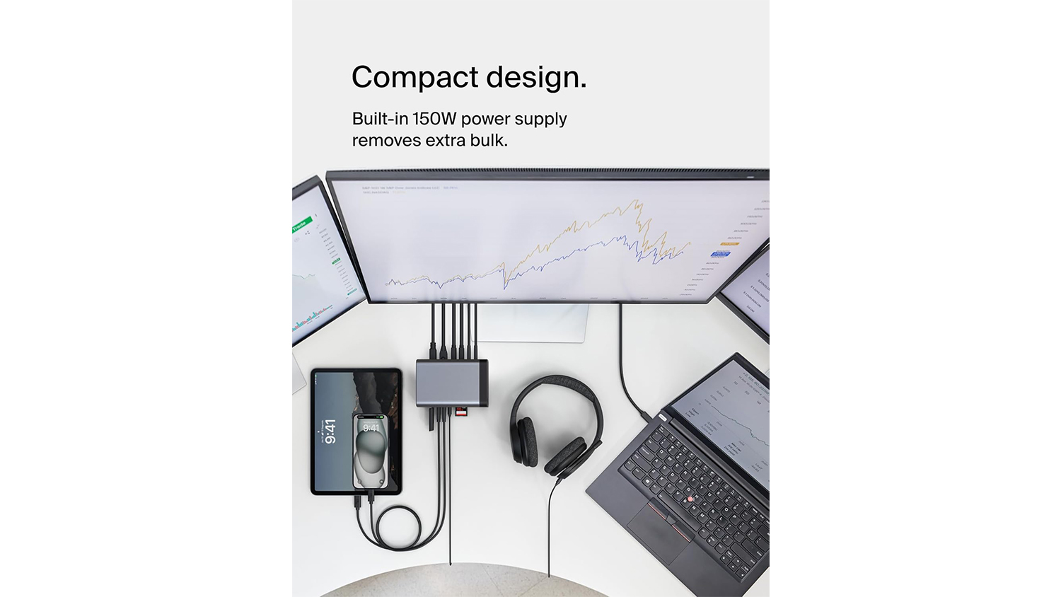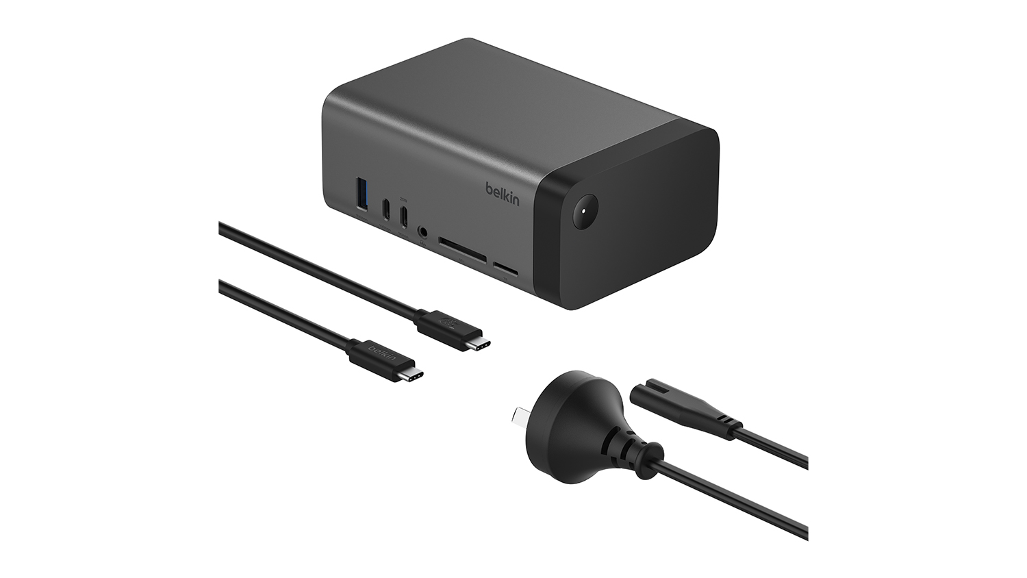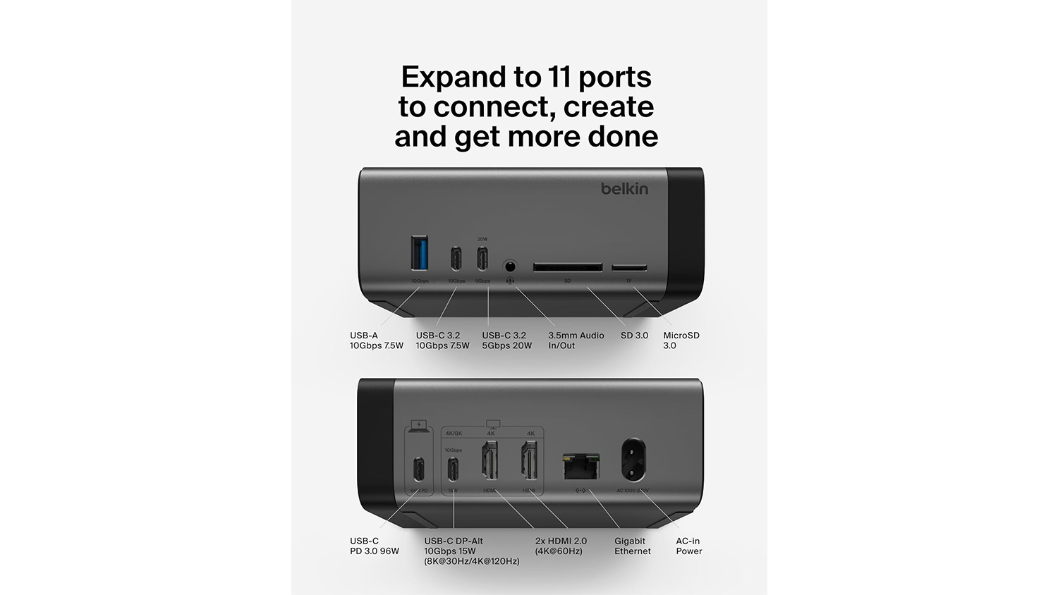**Belkin Connect USB-C 11-in-1 150W Pro GaN Docking Station in Black only. Devices shown are not included.