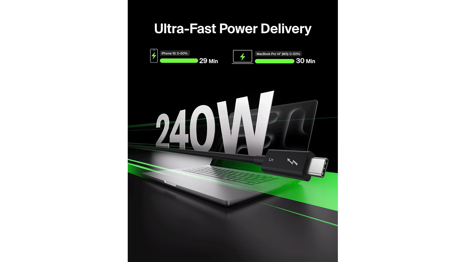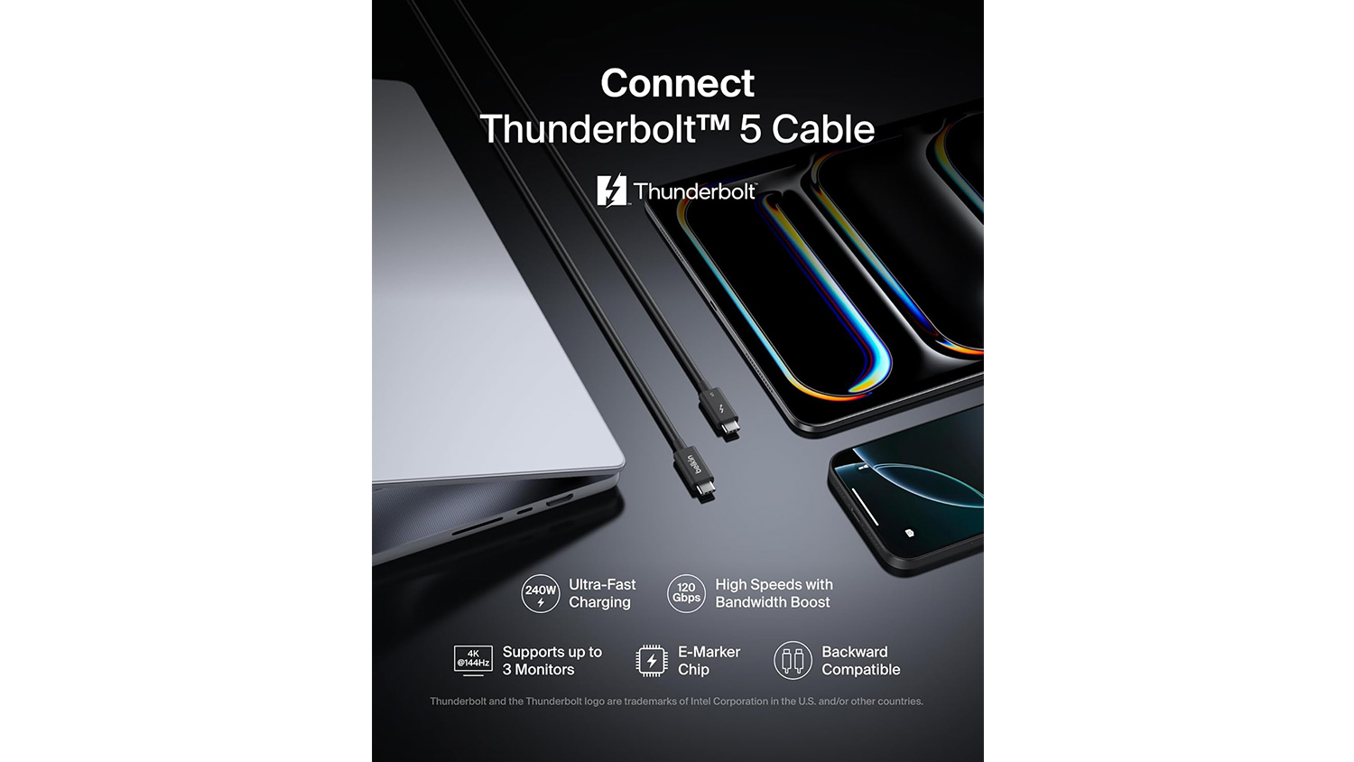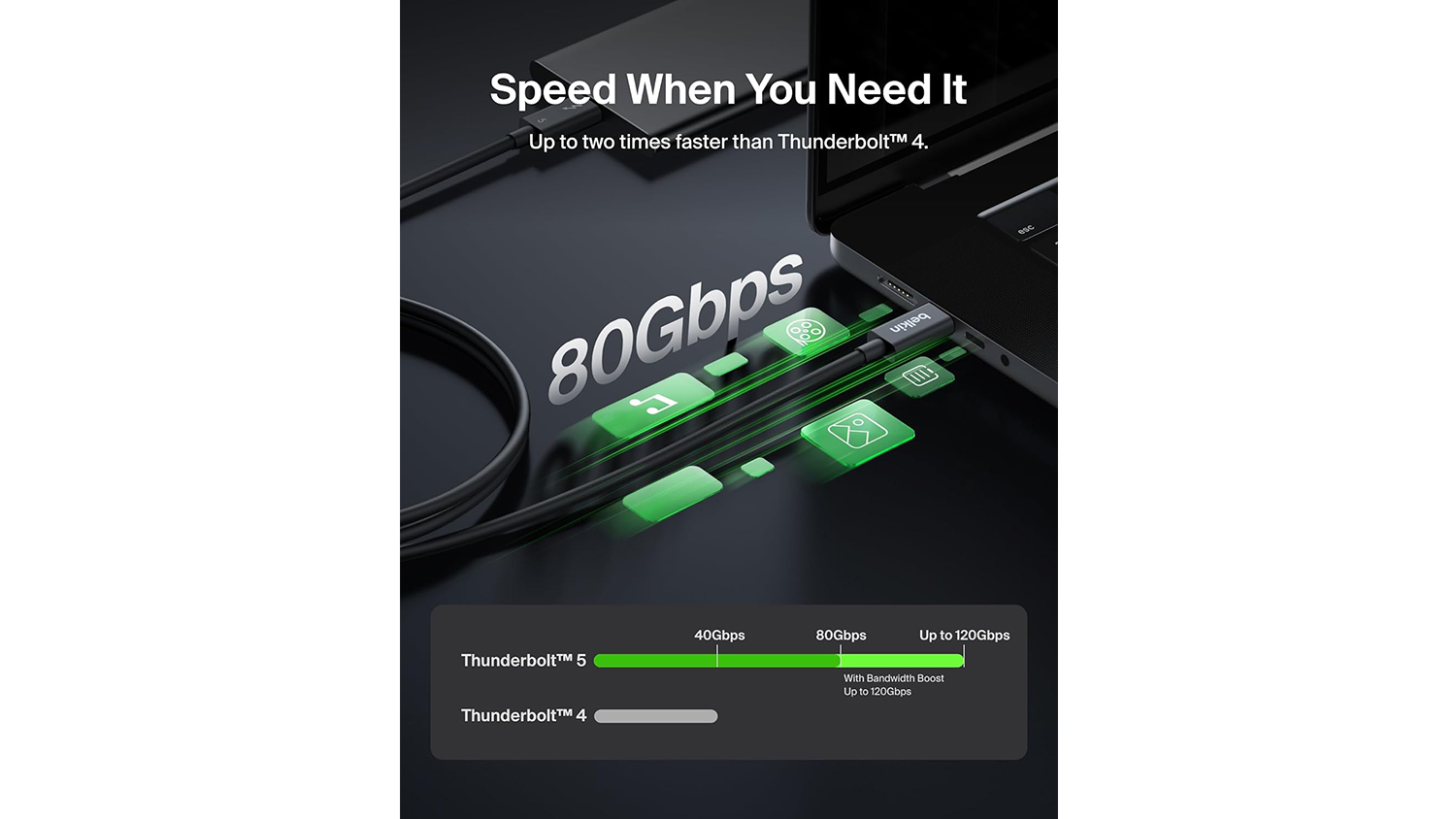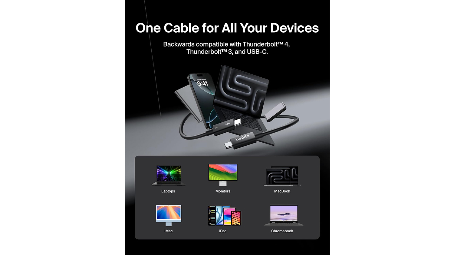 *Please note: Belkin Connect USB-C to USB-C Thunderbolt 5 Cable 1m in Black only. Compatible devices are not included.