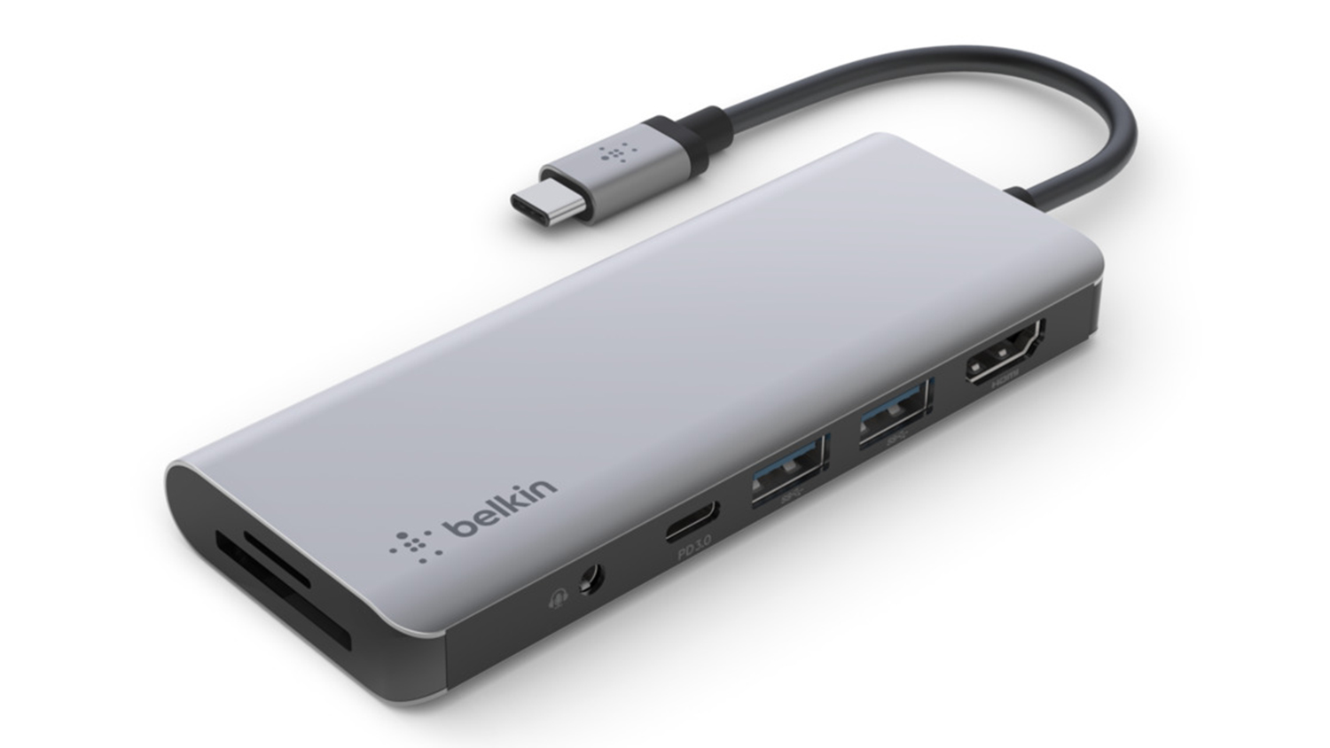 Belkin Connect USB-C to 7-in-1 Multiport Hub - Grey (AVC009btSGY) Supports up to 100W Power Delivery
