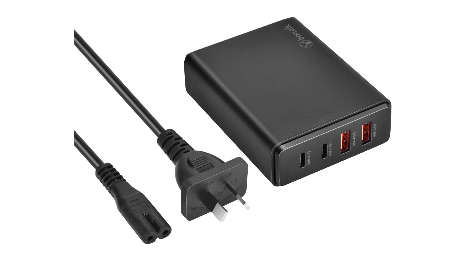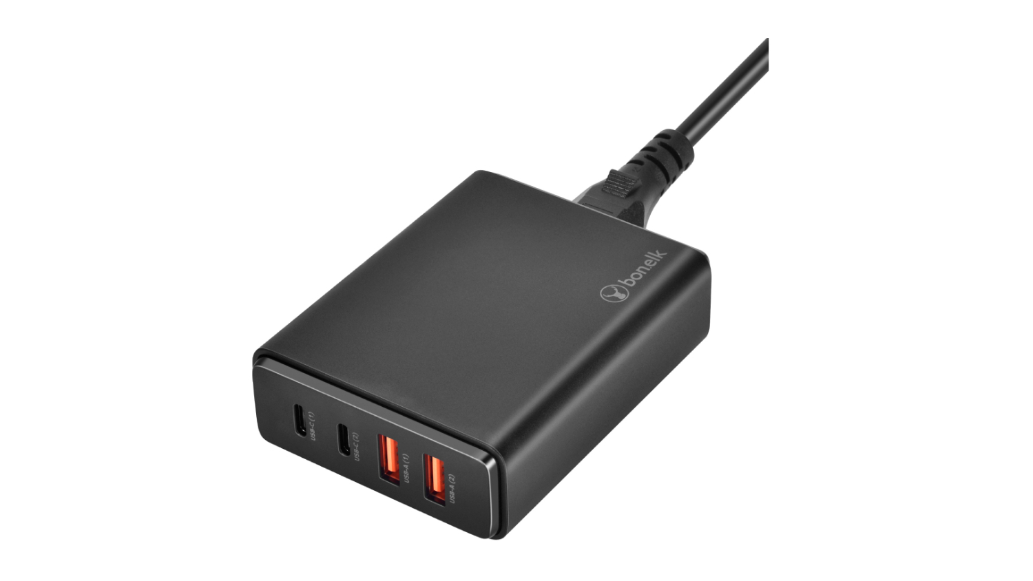 Power up all your devices quickly and safely with the Bon.Elk 65W PD GaN Desktop Charger with 2 USB-C & 2 USB-A Port. Featuring a robust 65W USB-C port and an 18W USB-A Quick Charge, plus two USB-C and two USB-A ports, it’s perfect for charging multiple gadgets simultaneously. Plus, thanks to GaN technology and smart protection circuits, this compact charger ensures efficient, high-speed charging wherever you use it.