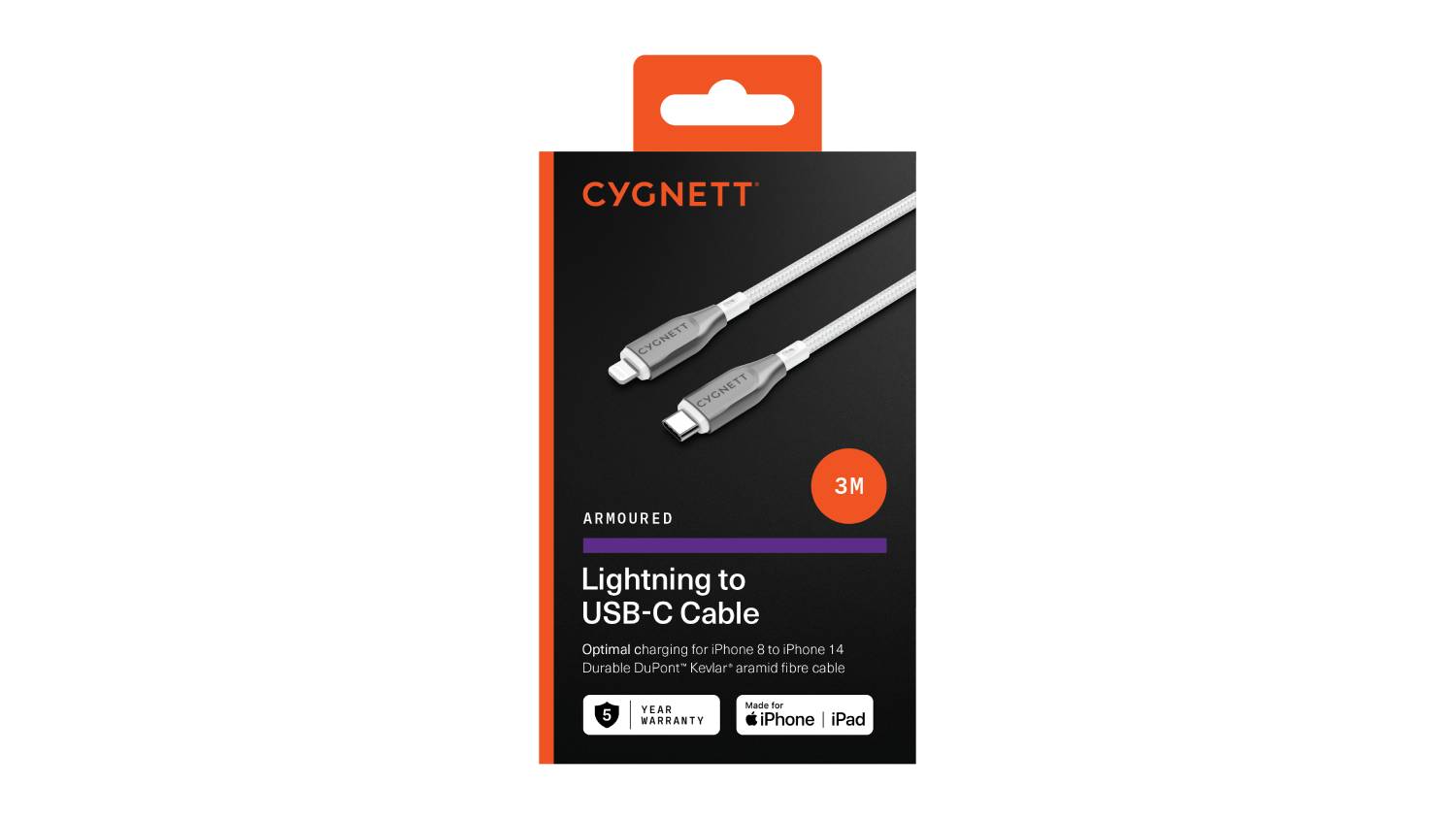 Enjoy efficient and reliable connections with the Cygnett Armoured USB-C to Lightning Cable. A practical accessory for your Apple devices, this cable rapidly replenishes your battery at a fast 30W output. It also features DuPont Kevlar aramid fibre to ensure it handles everyday use, whether at home or on the go.