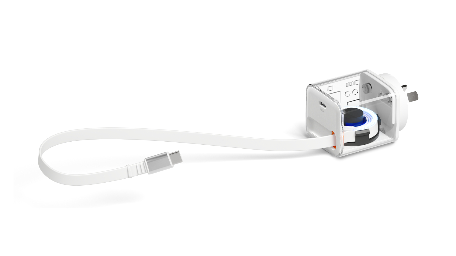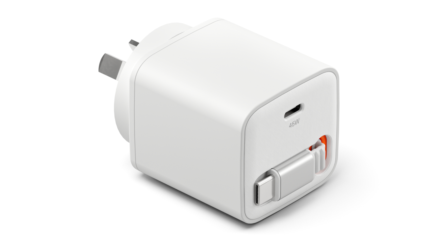 Cygnett PowerPlus 45W Wall Charger 80cm Retractable USB-C Cable - White (CY5763PDWCH)