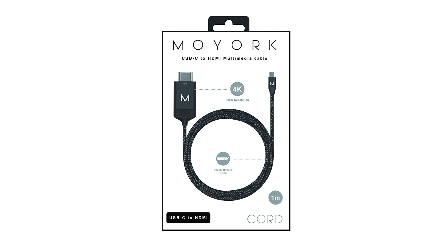 Made from premium materials, this Moyork Cord USB-C to HDMI A Male Nylon Cable is a convenient solution for your connectivity needs. This nifty accessory transmits excellent display quality, allowing you to watch stunning 4K videos effortlessly. It also incorporates double-braided nylon, aramid fibre, and dual-layer sheathing to keep up with the rigours of daily use.