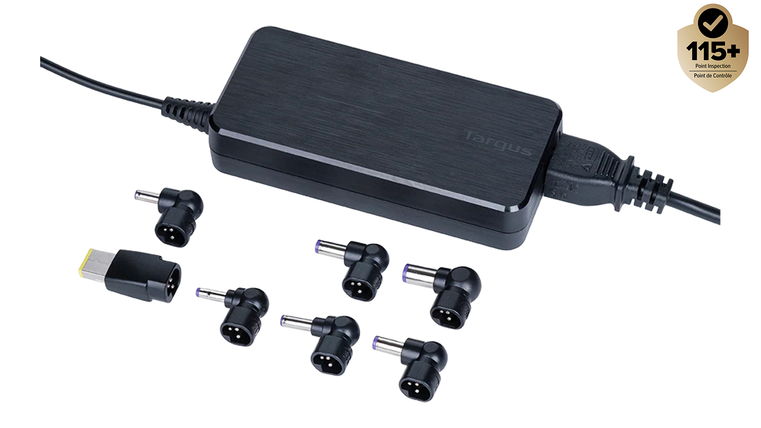 Power your daily workflow with the Targus 90W Standard Laptop Charger. Designed for dependable performance, this charger efficiently refuels your device while protecting it from electrical surges and spikes. It also flaunts an interchangeable tip system to seamlessly support a wide range of laptops.