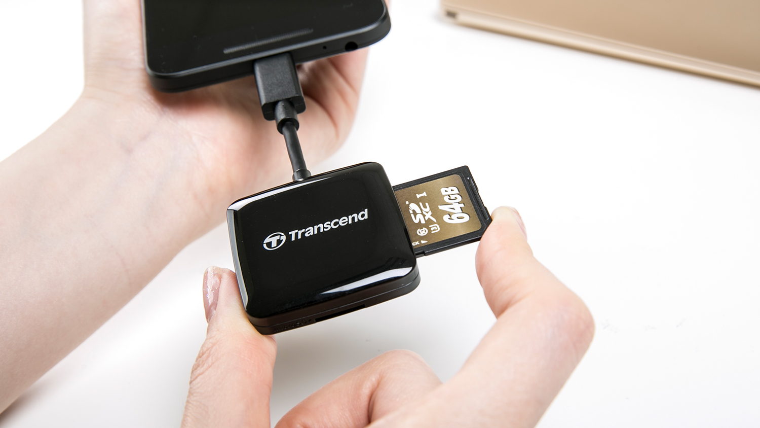 Designed to help you easily transfer files from your computer to your smartphone, the Transcend OTG Smart Card Reader comes equipped with dual SD card slots and USB Type-A port. This portable card reader utilizes a reversible Type-C connector, enabling you to connect it to a USB Type-C enabled laptop or smartphone.
