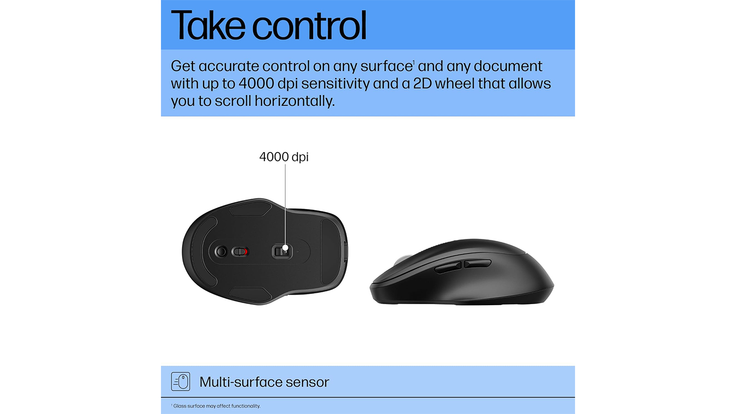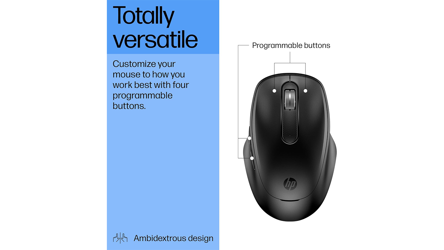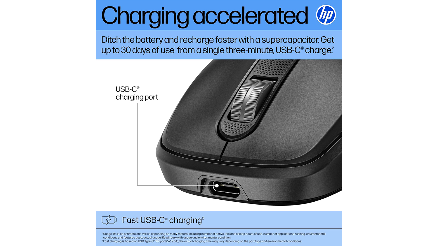 Enjoy pinpoint precision and control on virtually any surface with the HP 510 Ultra-Fast Rechargeable Wireless Mouse. This device offers 4000 dpi sensitivity, a smooth 2D scroll wheel, and four programmable buttons that adapt to your workflow. It also features an ambidextrous design for comfortable use. Plus, a quick 3-minute USB-C recharge provides up to 30 days of uninterrupted power.