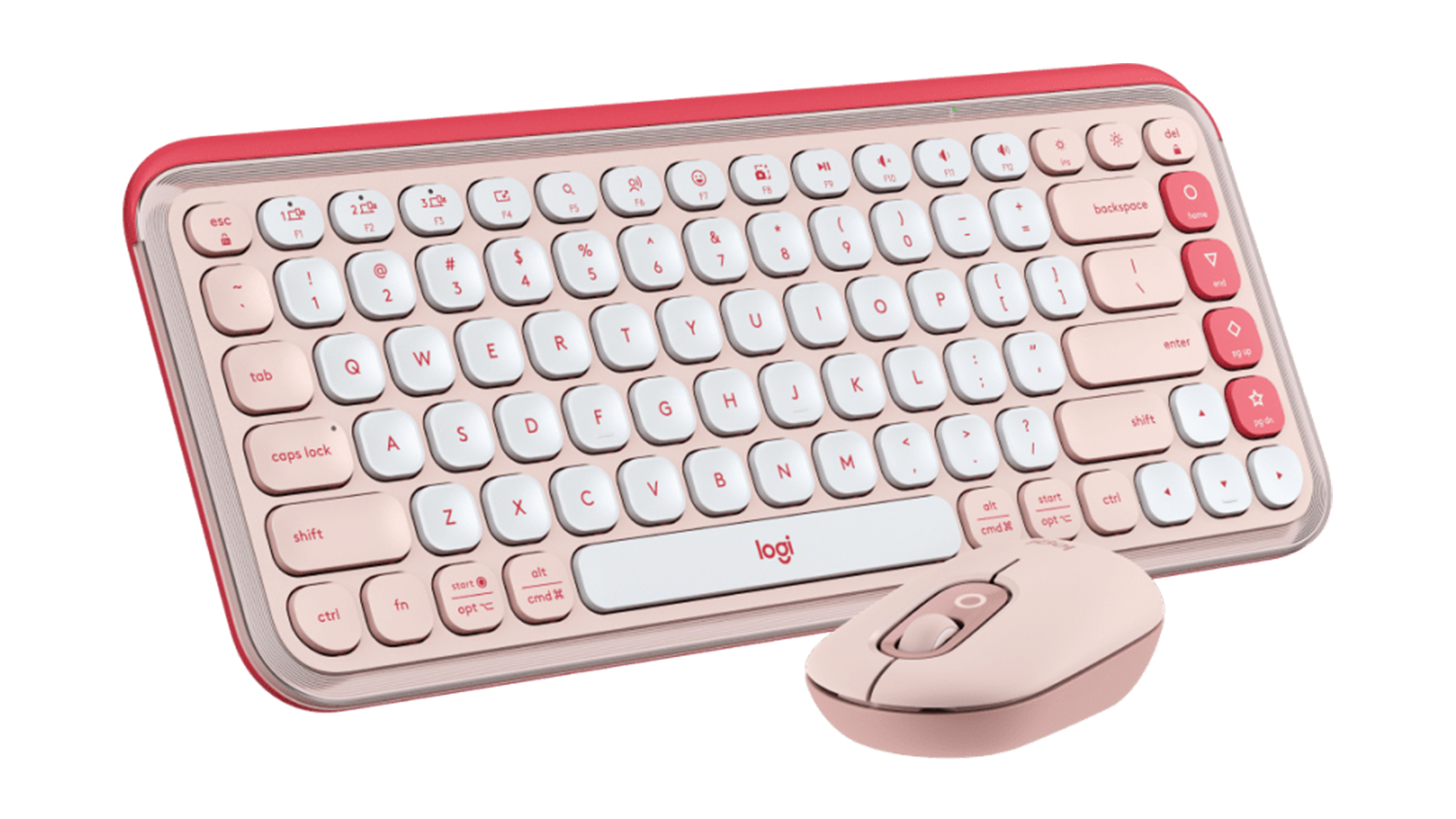 1Logitech POP Icon Keys Wireless Keyboard & Mouse Bundle with Customisable Action Keys/Button in Rose only. Other colour options are sold separately.