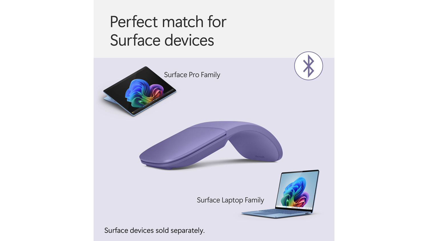 *Microsoft Surface Arc Wireless Mouse only. Compatible devices are not included.