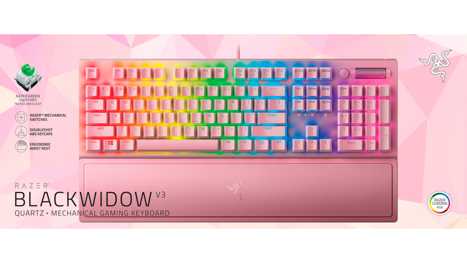 Enhance your battle station and gaming experience with Razer BlackWidow V3 Mechanical Gaming Keyboard. Packed with Razer Chroma RGB lighting, this mouse offers you a brighter RGB lighting customisation. Now you can enjoy dynamic lighting reactions to over 150 integrated games. Get the full experience of customising your Razer Blackwidow V3 mechanical gaming keyboard by choosing from Razer’s mechanical switches, available in two variants.
