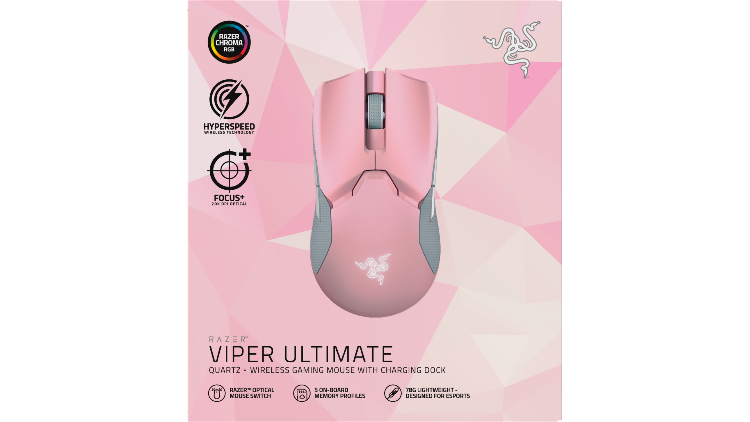 Play with style and upgrade your gaming setup with this sleek Razer Viper Ultimate Wireless Gaming Mouse With Charging Dock. It is armoured with Razer Hyperspeed Wireless Technology, Razer Focus+ Optical Sensor and Razer Optical Mouse Switch to fully give you the ultimate gaming experience. Crush your opponents seamlessly with this robust wireless gaming mouse.