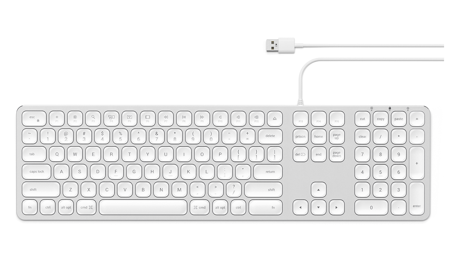 Satechi Aluminium Wired USB Keyboard - Silver/White
