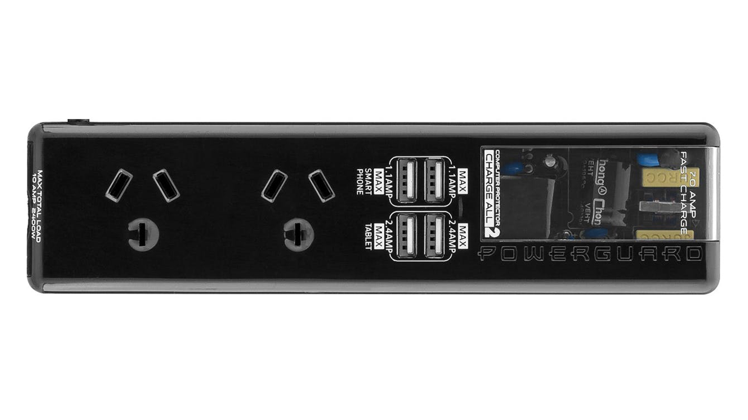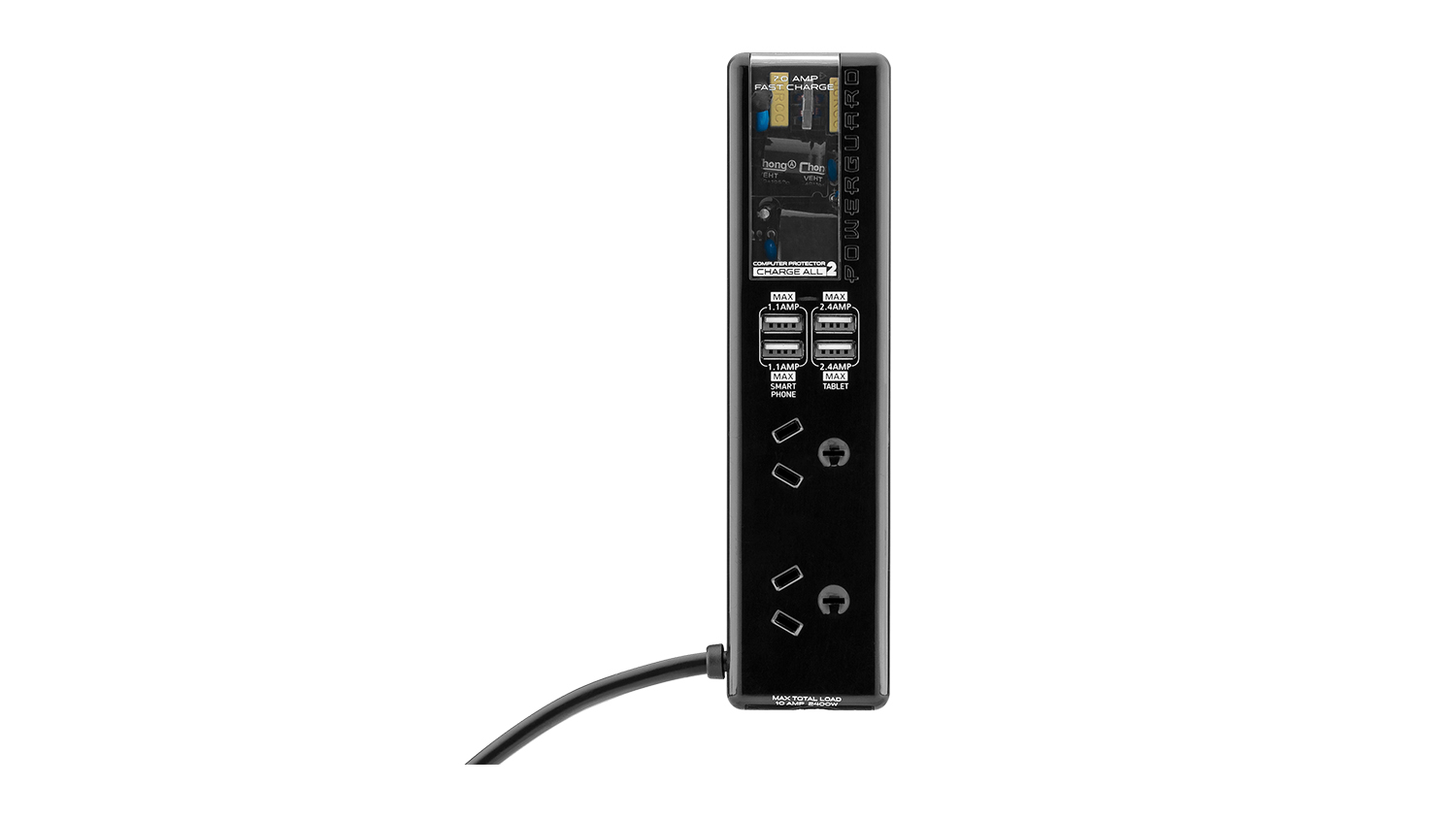 PowerGuard Charge All 2 is designed to charge your laptop, smartphones, tablets, and more safely. It provides absolute spike protection, keeping your connected electronics safe from accidental power outages or lightning storms. It gives two AC outlets and four USB ports, enabling you to connect and boost the battery of your devices without the need for adaptors.