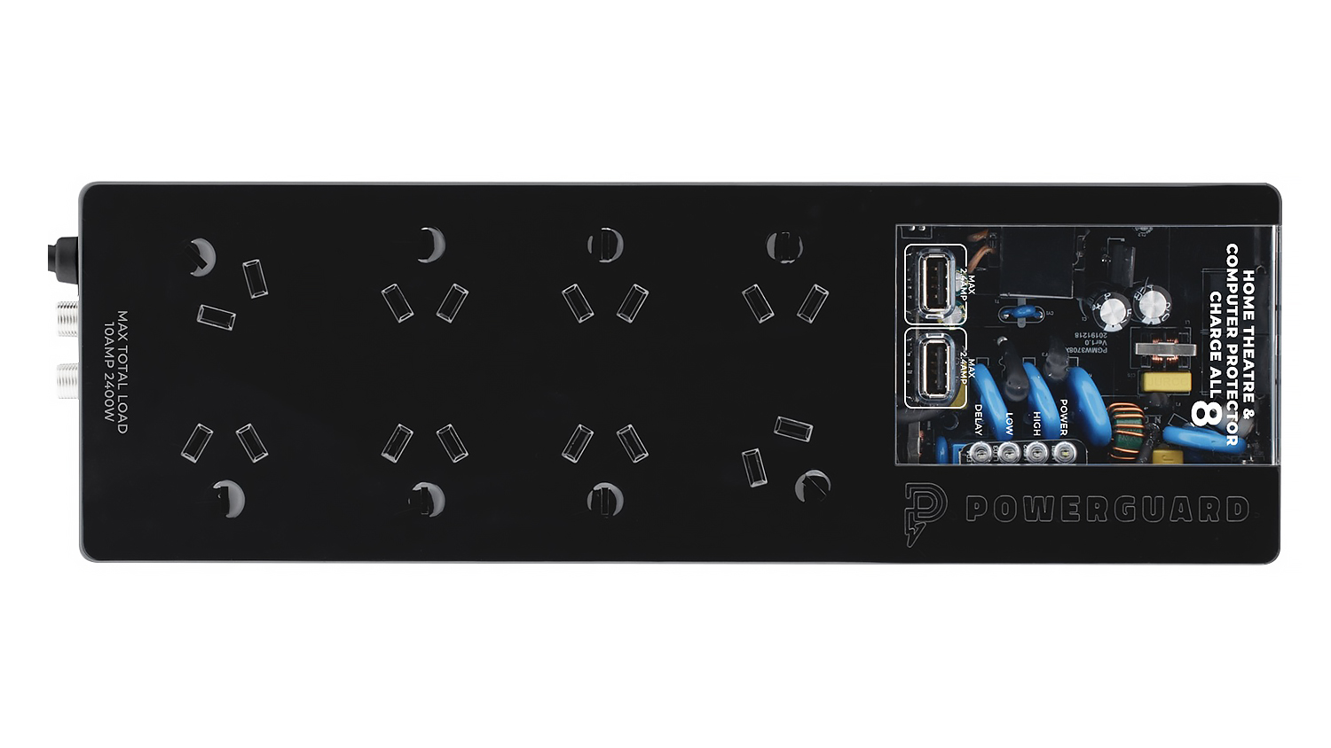 Featuring a spike protection technology, the PowerGuard Charge All 8 keeps your plugged electronics powered up and safe from a power outage or lightning. It provides eight additional AC outlets and four USB ports, allowing you to connect cables and boost the battery of your smartphone, tablet or power bank without the need of adaptors.