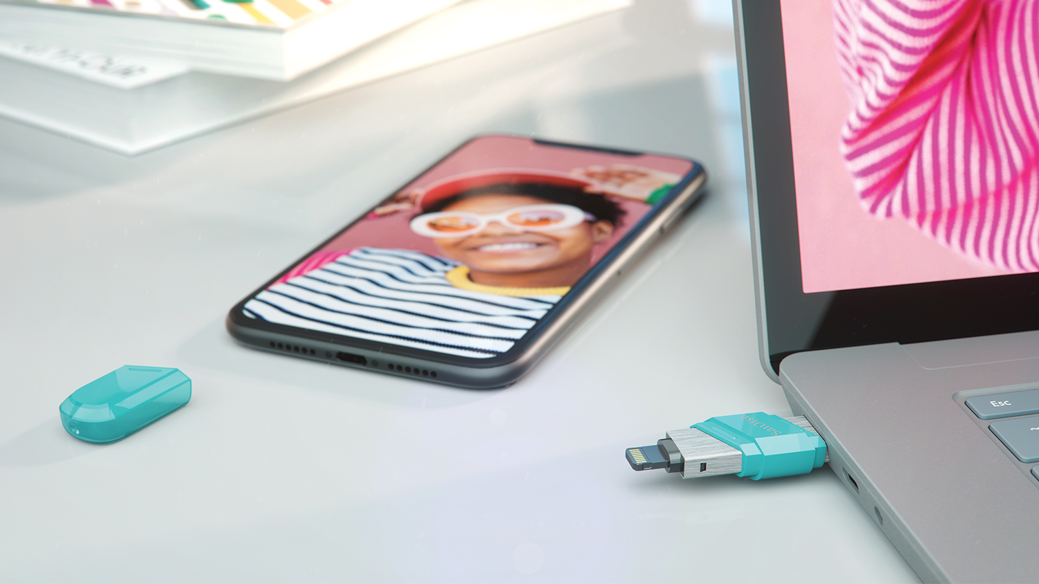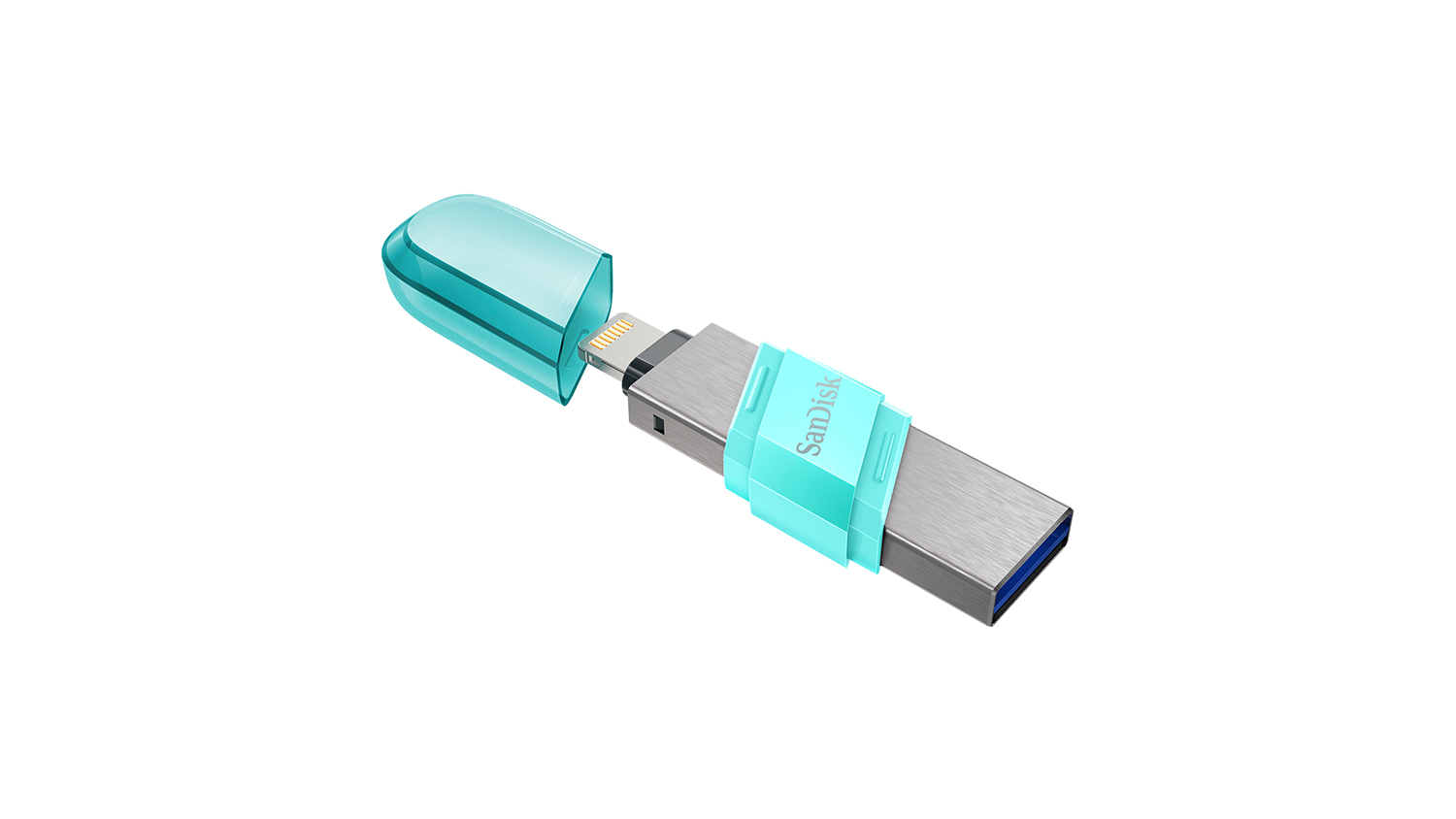 Free up space on your Apple devices using this 2-in-1 SanDisk iXpand Flip USB 3.1 Flash Drive. It comes with a lightning USB Type-A connector and a USB 3.1 Gen 1 connector that allows you to transfer files between an iPhone and other compatible devices. Using the iXpand Drive app*, you can set it up for automatic backup to sync all of your photos and videos conveniently.