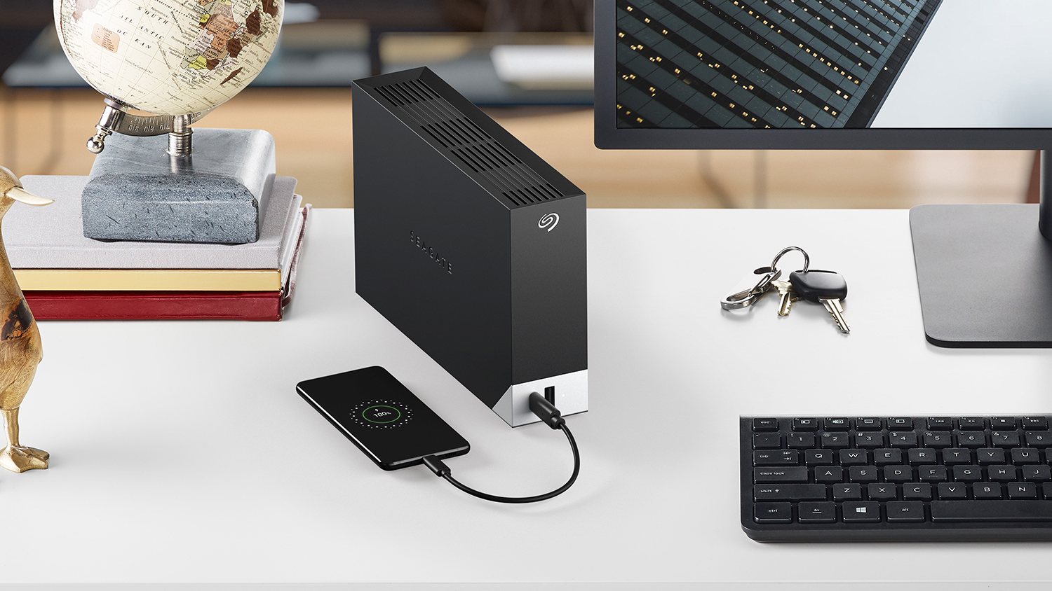 Back up your files securely with the Seagate One Touch USB 3.0 Desktop External Drive with Built-In Hub. With a whopping 20TB capacity, this device offers ample space for all your digital data, while USB-C and USB 3.0 ports allow simultaneous connection and recharging of multiple devices. It is also enhanced with a password-protected system to ensure your files stay safe and secure.