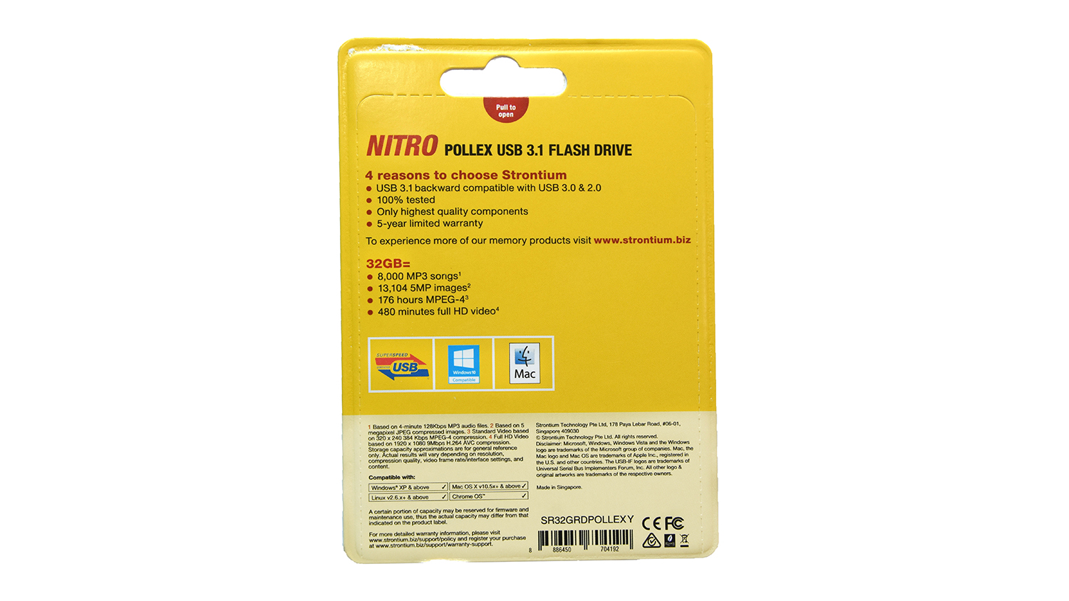 Introducing the Strontium Nitro Pollex USB 3.1 Flash Drive, a handy storage solution that allows you to take your digital files wherever you go. Enjoy sufficient space for your music, videos, photos, and documents thanks to this flash drive's 32GB storage capacity. Additionally, you can experience blazing-fast data transfers with a read speed of up to 100 MB/s.