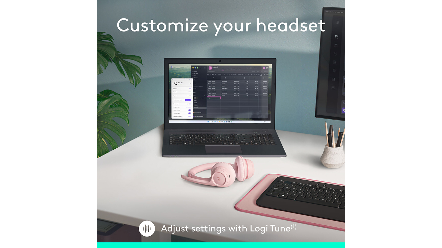 *Logi Tune is available on Windows, macOS, iOS, and Android. Download Logi Tune at logitech.com/tune, Apple App Store, or Google Play Store.