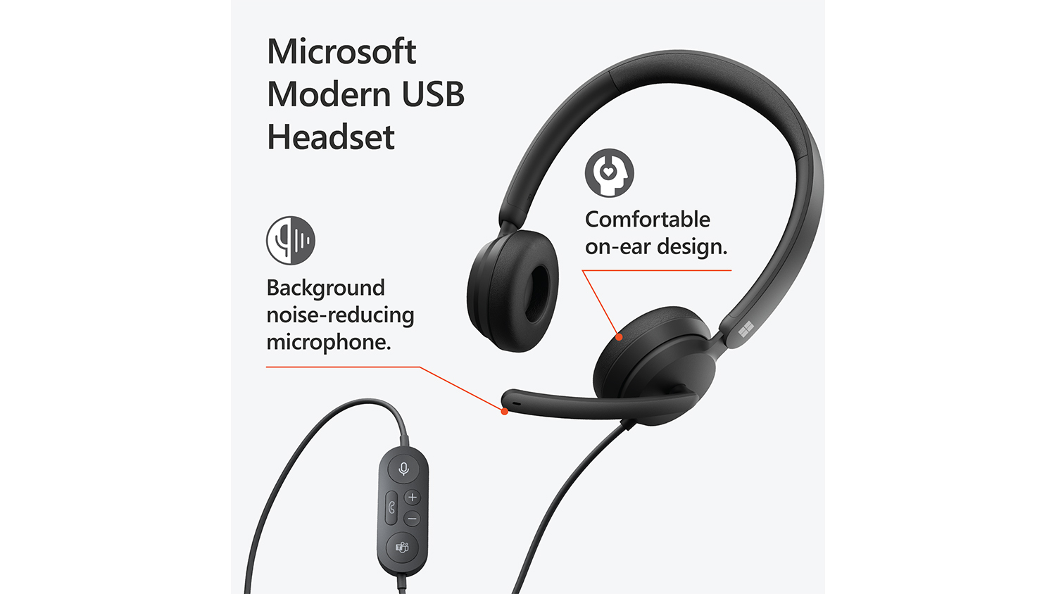Stay on top of your everyday tasks using the Microsoft Modern USB Headset. Perfect for your productivity needs, this headset incorporates a background noise-reducing microphone and high-quality speakers that enable you to stay focused while in a meeting. It also employs easy-access call controls so you can effortlessly manage your audio experience.