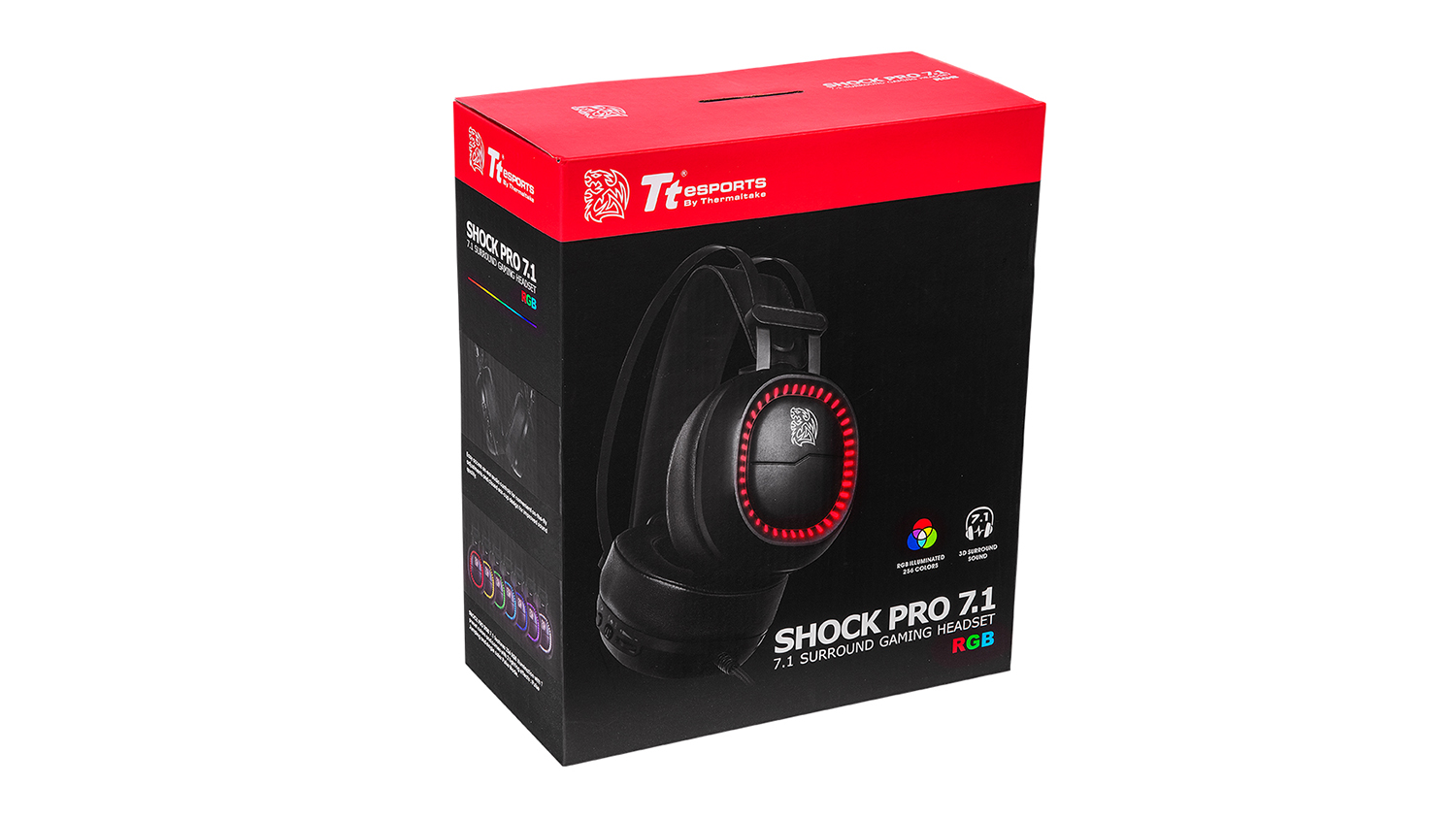 Remain focused while in the game with the Tt eSPORTS SHOCK PRO RGB 7.1 USB PC Headset. This headset comes equipped with a 40mm neodymium driver, which produces detailed and profound audio. It also features a lightweight and durable build to deliver total comfort during long gaming sessions.