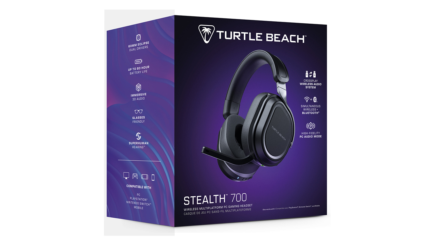 Whether you're battling opponents or discussing tactics with your teammates, the Turtle Beach Stealth 700 (Gen 3) Gaming Wireless Over-Ear Headset lets you hear high-quality sounds that give you a competitive edge in every game. This headset features Eclipse Dual Drivers to deliver faithful 24-bit audio and a high-bandwidth mic to ensure crystal-clear voice pickup. It also boasts the cutting-edge CrossPlay Wireless System with dual USB transmitters and Bluetooth, allowing you to seamlessly connect to your PC, consoles, and mobile devices.