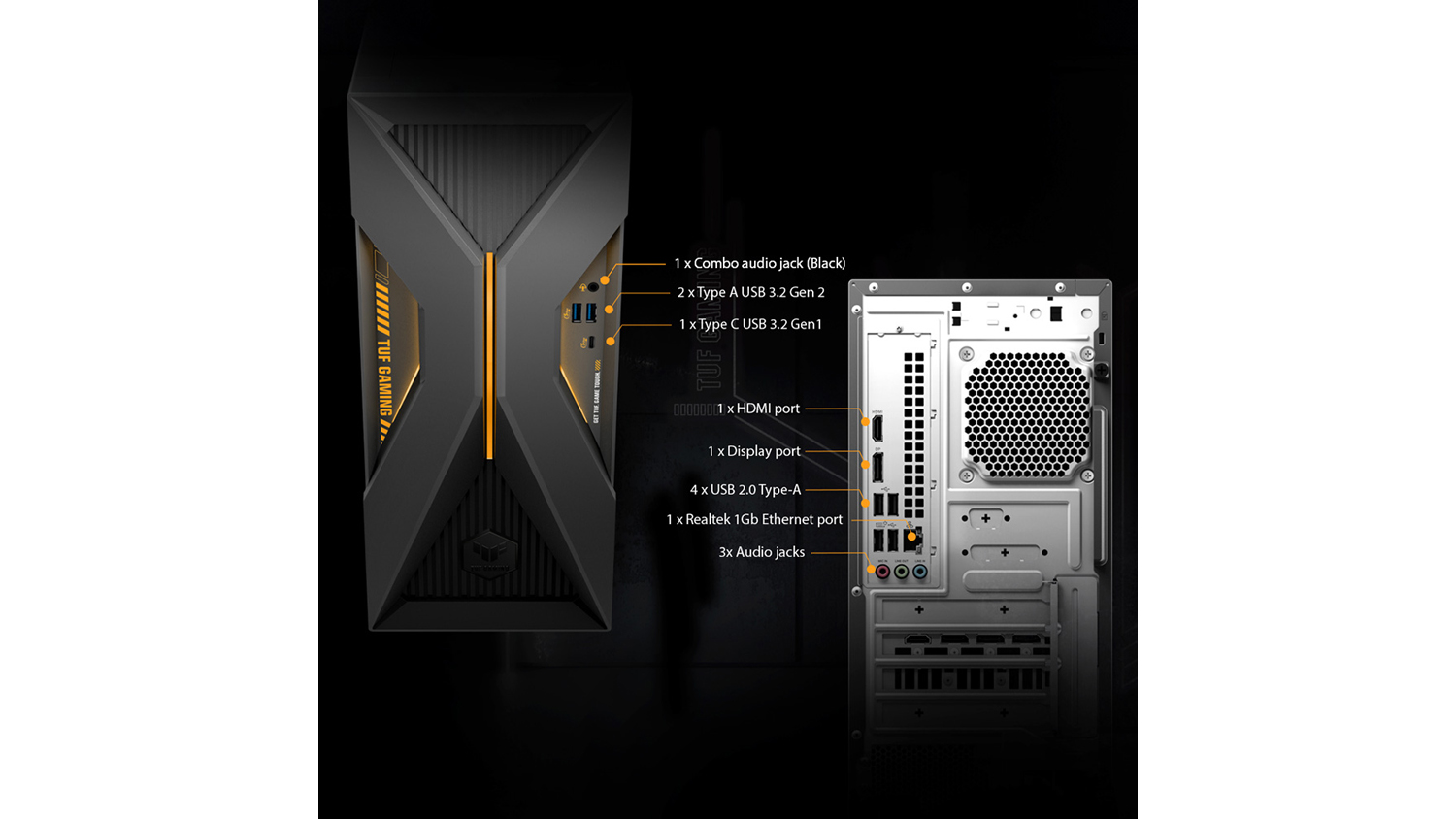 Pave your way towards victory and immerse yourself in a whole new level of play with the Asus TUF Gaming Desktop. The ultimate entertainment powerhouse, this premium device features a competitive Intel Core i7 processor, 16 GB RAM, and a generous 1 TB SSD capacity. It also combines a dedicated NVIDIA GeForce RTX 5060 graphics card with 8 GB memory and an integrated Intel UHD graphics card to fuel your high-resolution games.