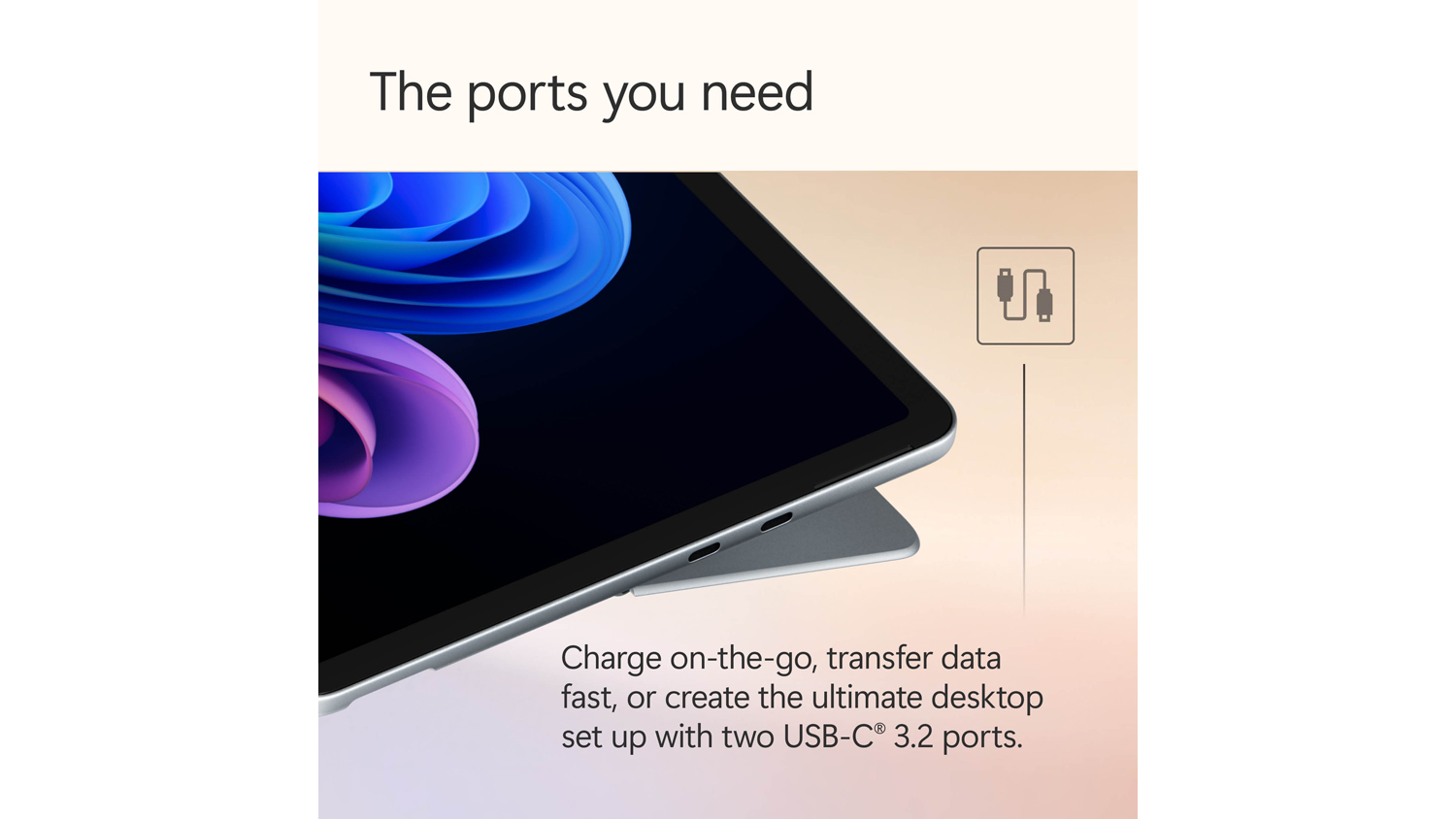 | USB Port | 2 x USB-C ports (with support for: Charging, Data transfer, DisplayPort 1.4a, Surface Thunderbolt 4 Dock and other accessories, Supports fast charging with a minimum 45W power supply via Surface Connect or USB-C) |