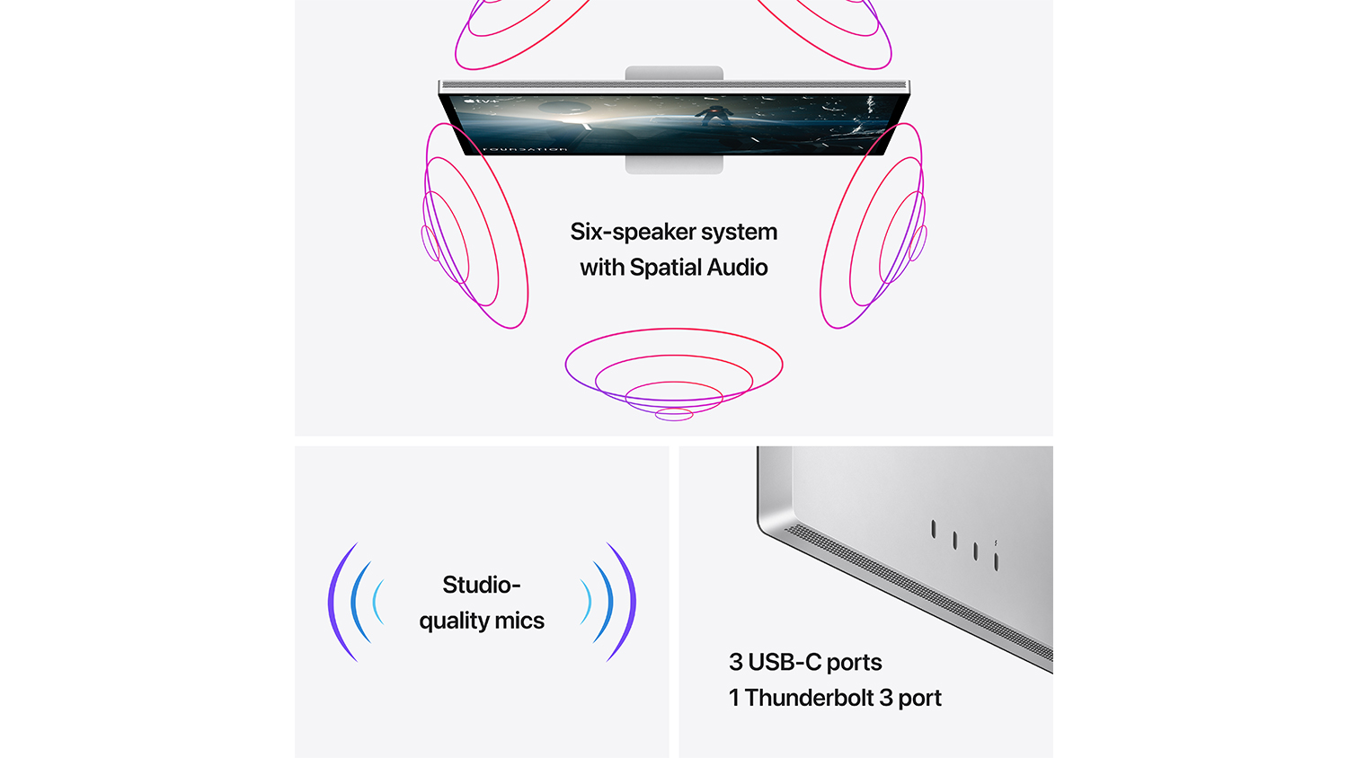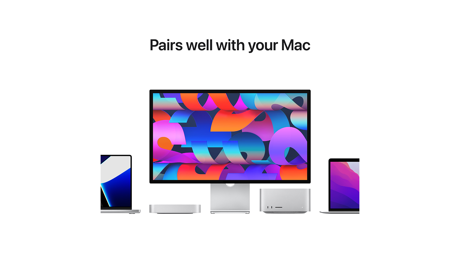 Introducing Studio Display. An immersive 27-inch 5K Retina display* with a 12MP camera with Centre Stage, studio-quality mics and six-speaker sound system. Pairs beautifully with any Mac.