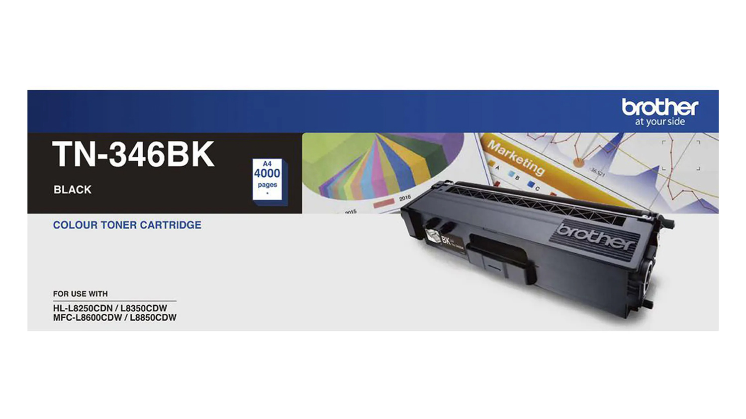 Ideal for multi-page printing, the Brother TN346BK Black Toner Cartridge can provide you up to 3,500 pages of clear and high-quality prints. This Cartridge is compatible with various Brother colour laser printers such as HL-L8250CDN, L8350CDW, MFC-L8600CDW, and L8850CDW.