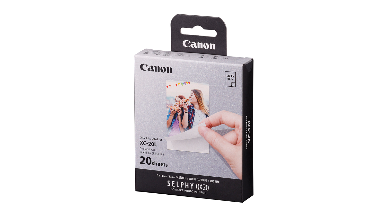 Turn your favourite moments into lasting keepsakes using the Canon Selphy XC-20L Card Size Photo Paper 20 Pack! A must-have accessory for the Selphy QX20 printer, this material features an ink cassette that produces high-quality 2.1 x 3.4” photos. It also has an adhesive backing, making it ideal for crafting, decorating, or scrapbooking.